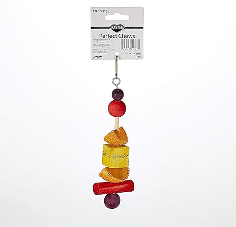 Perfect Chews are colorful kabobs with wood and loofah textures to provide hours of chewing and play time for your pet. Each kabob has numerous colorful chews on a wood skewer that is topped with a clasp for easy attachment to your pets cage or habitat.