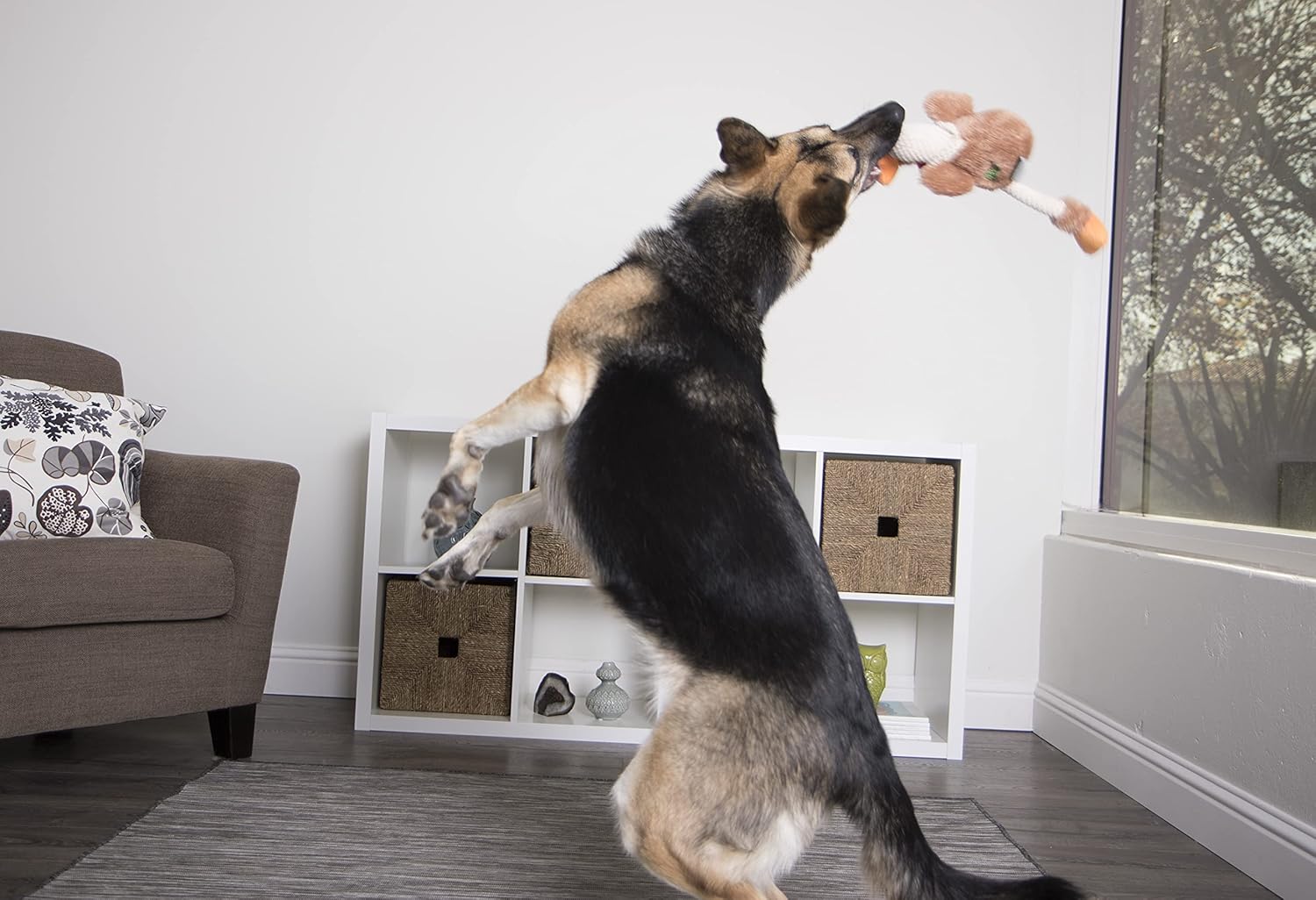 goDog Checkers Skinny Rooster Squeaky Plush Dog Toy, Chew Guard Technology - Brown