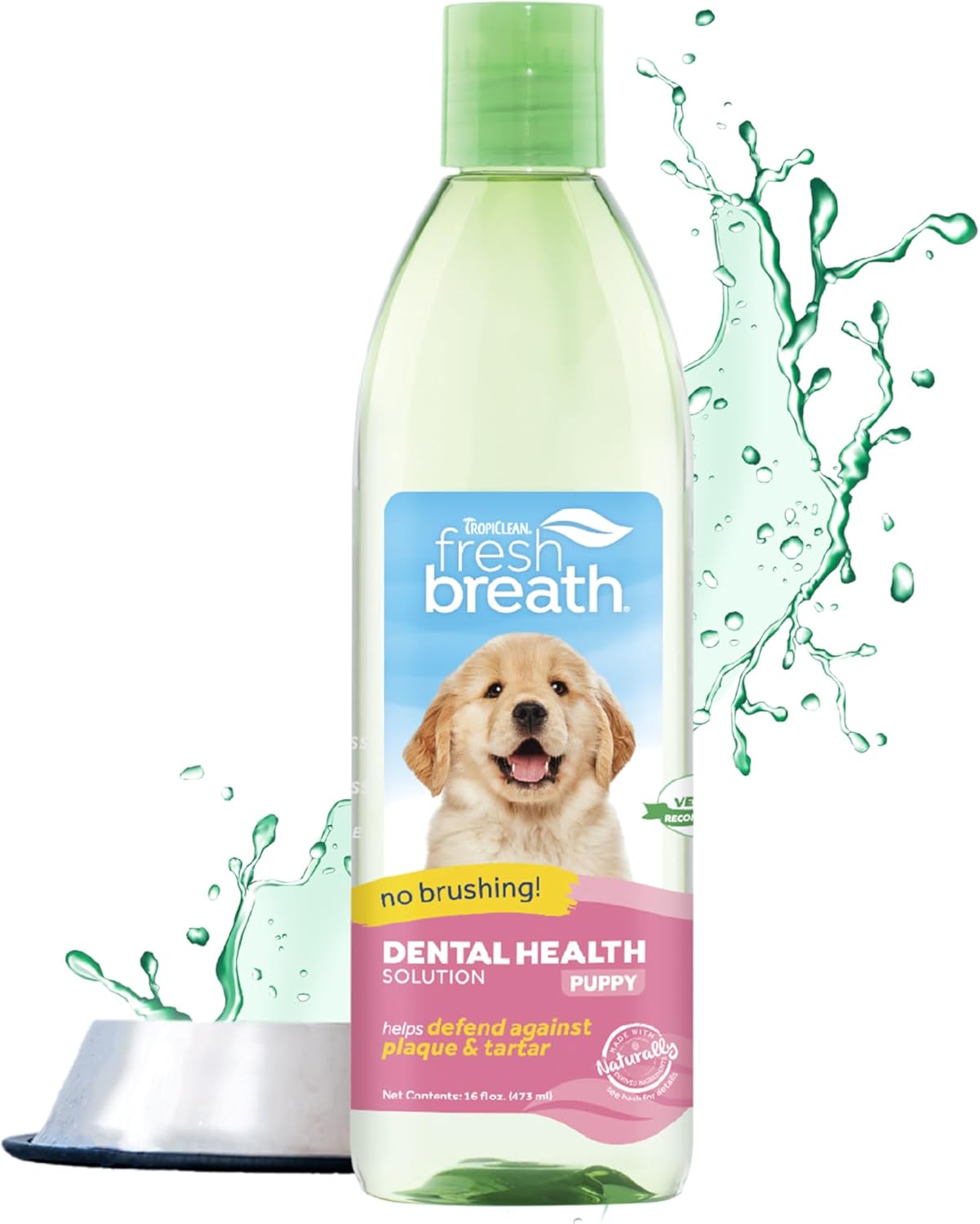 TropiClean Fresh Breath Water Additive for Puppies | Breath Freshener and Teeth Cleaning Solution | No Toothpaste or Toothbrush Required |