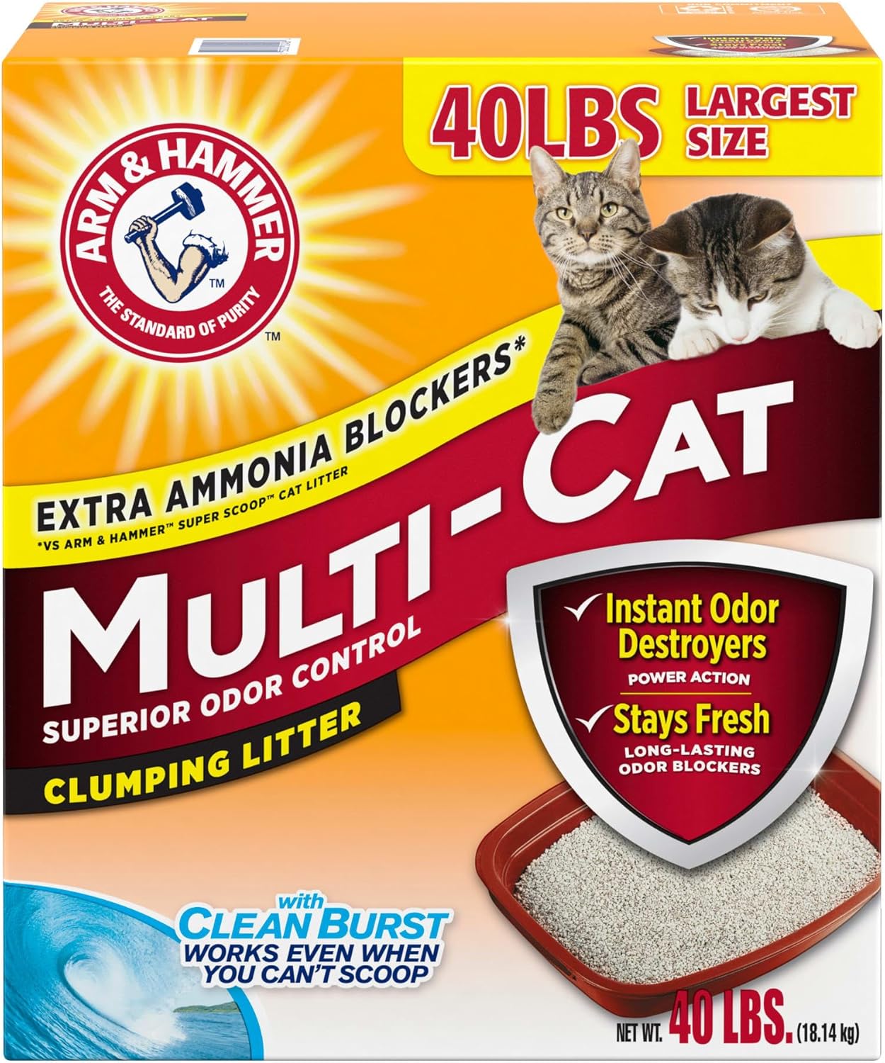 • Multi-Cat Clean Burst kitty litter has a fresh and clean scent that helps refresh litter so it works even when you can’t scoop.