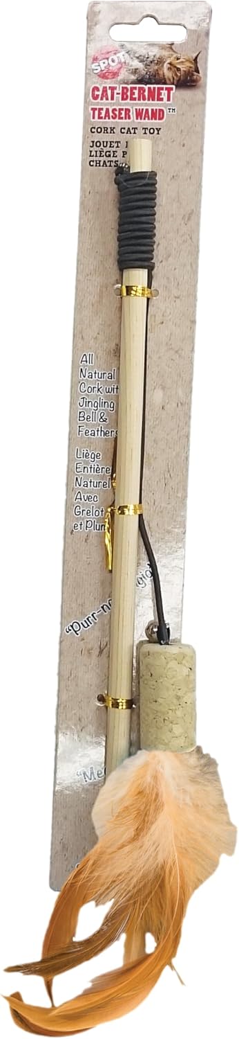 SPOT Cat-Bernet Cork with Feathers Teaser Wand Bernet Cat Toy, Assorted