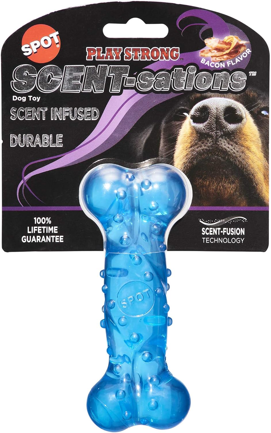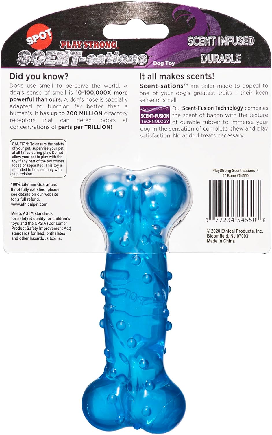 SPOT Play Strong Scent-sations Bone - Scent-Infused, Strong, Durable TPR Rubber, Heavy Duty Dog Toys for Aggressive Chewers