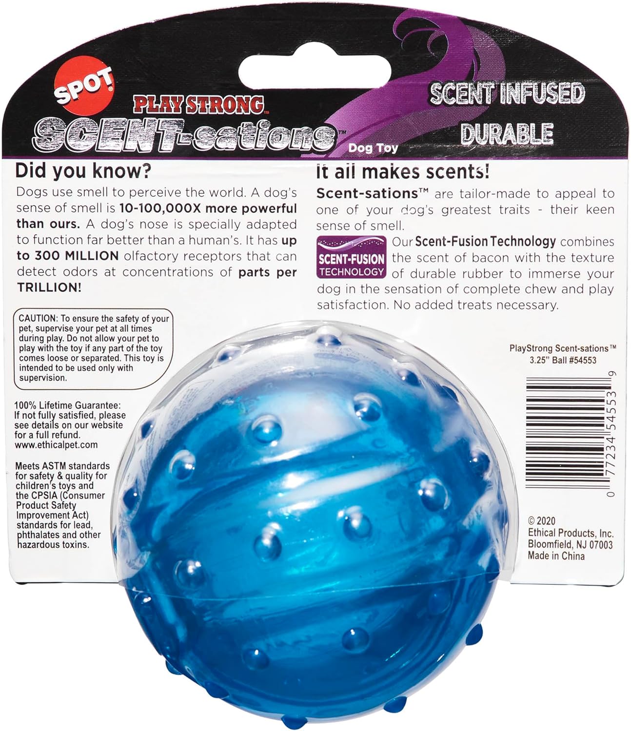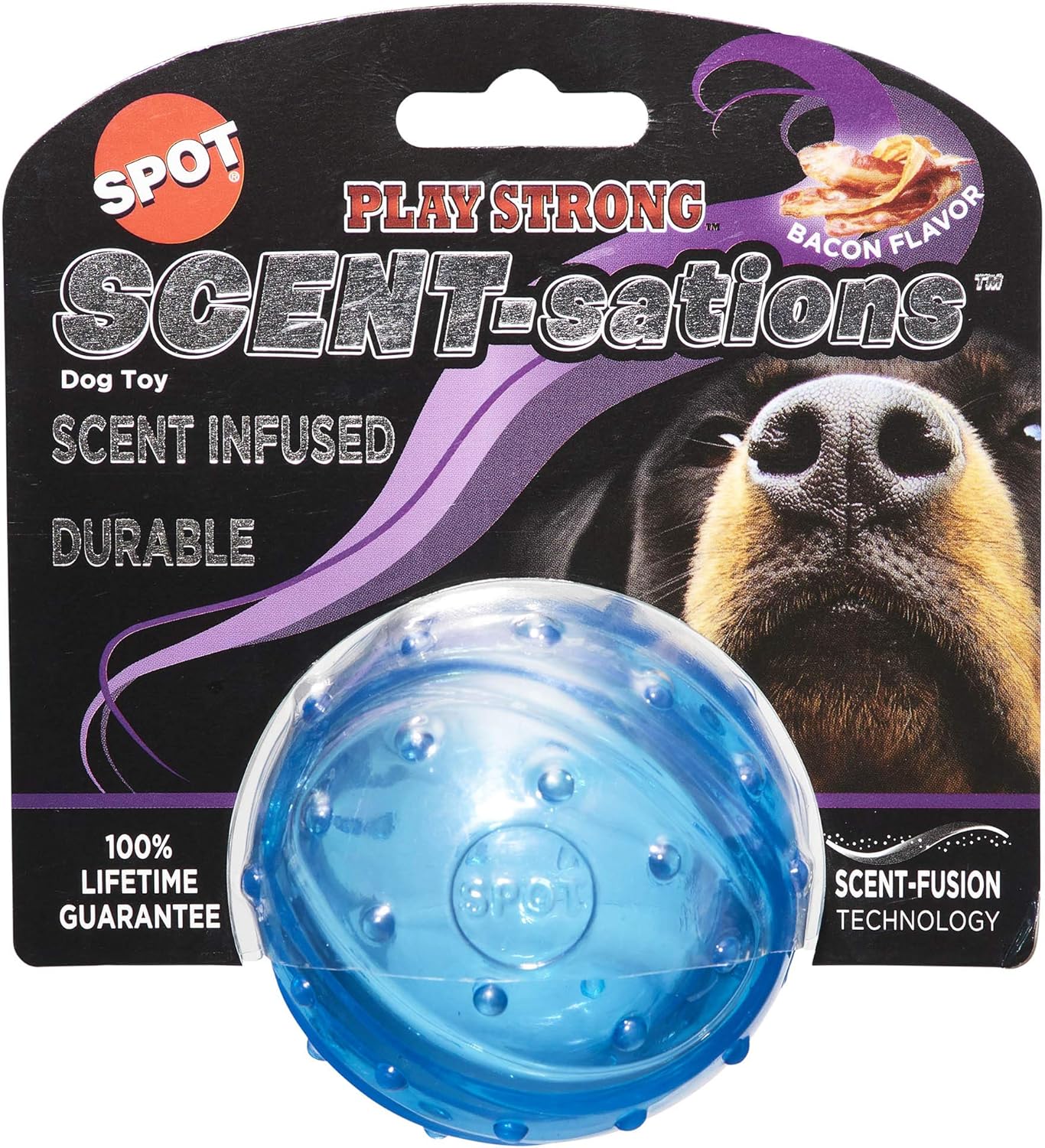 SPOT Play Strong Scent-sations Ball - Scent-Infused, Strong, Durable TPR Rubber, Heavy Duty Dog Toys for Aggressive Chewers up to 45lbs, Perfect for Puppies & Medium Breeds, 3.25in, Bacon Flavored