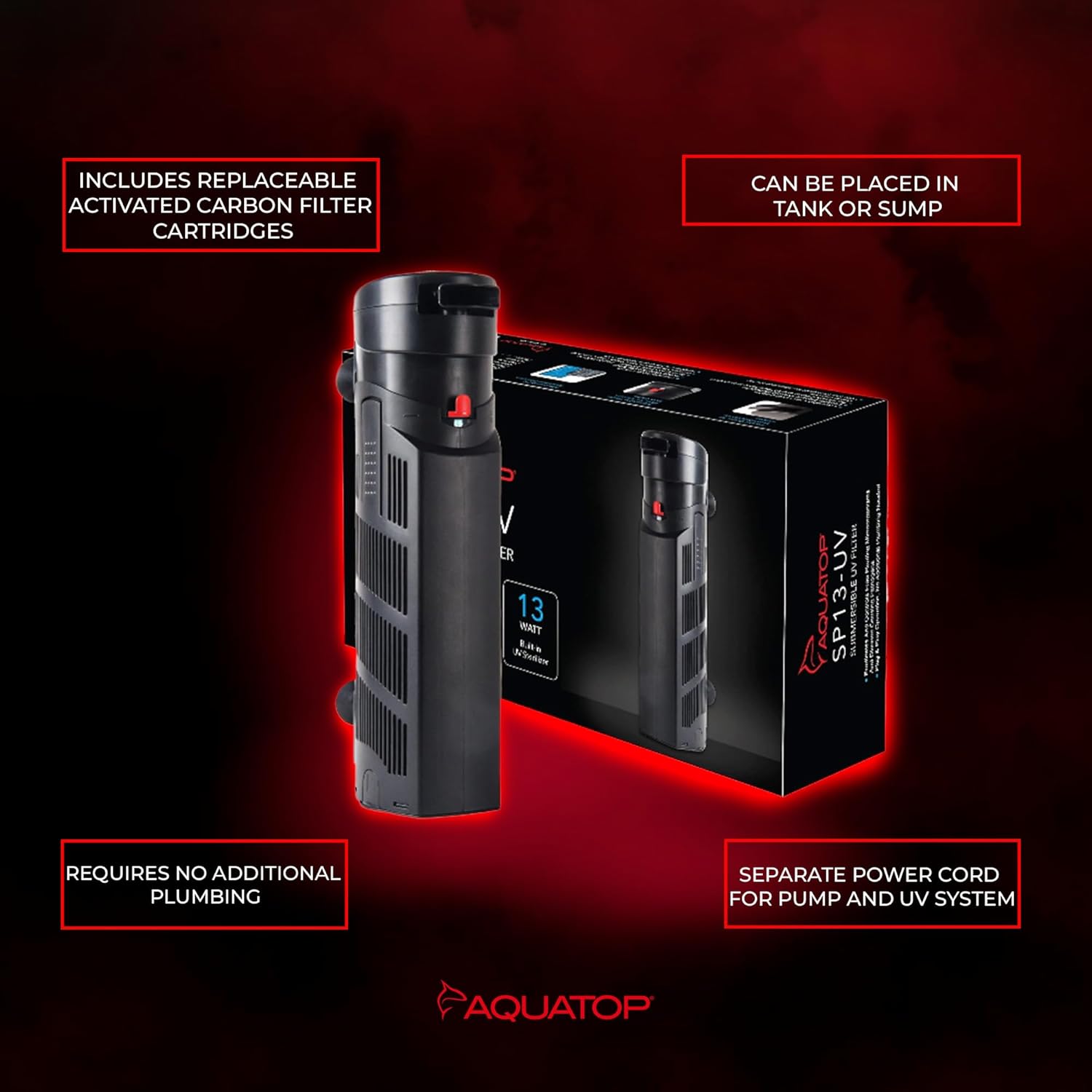 Aquatop 395 GPH Internal Filter with 13W UV Light - for Up to 150 Gallon Fish Tanks, UV for Crystal Clear Water, Fresh & Saltwater Use, Aquarium Filters for Fish & Turtle Tanks, SP13-UV