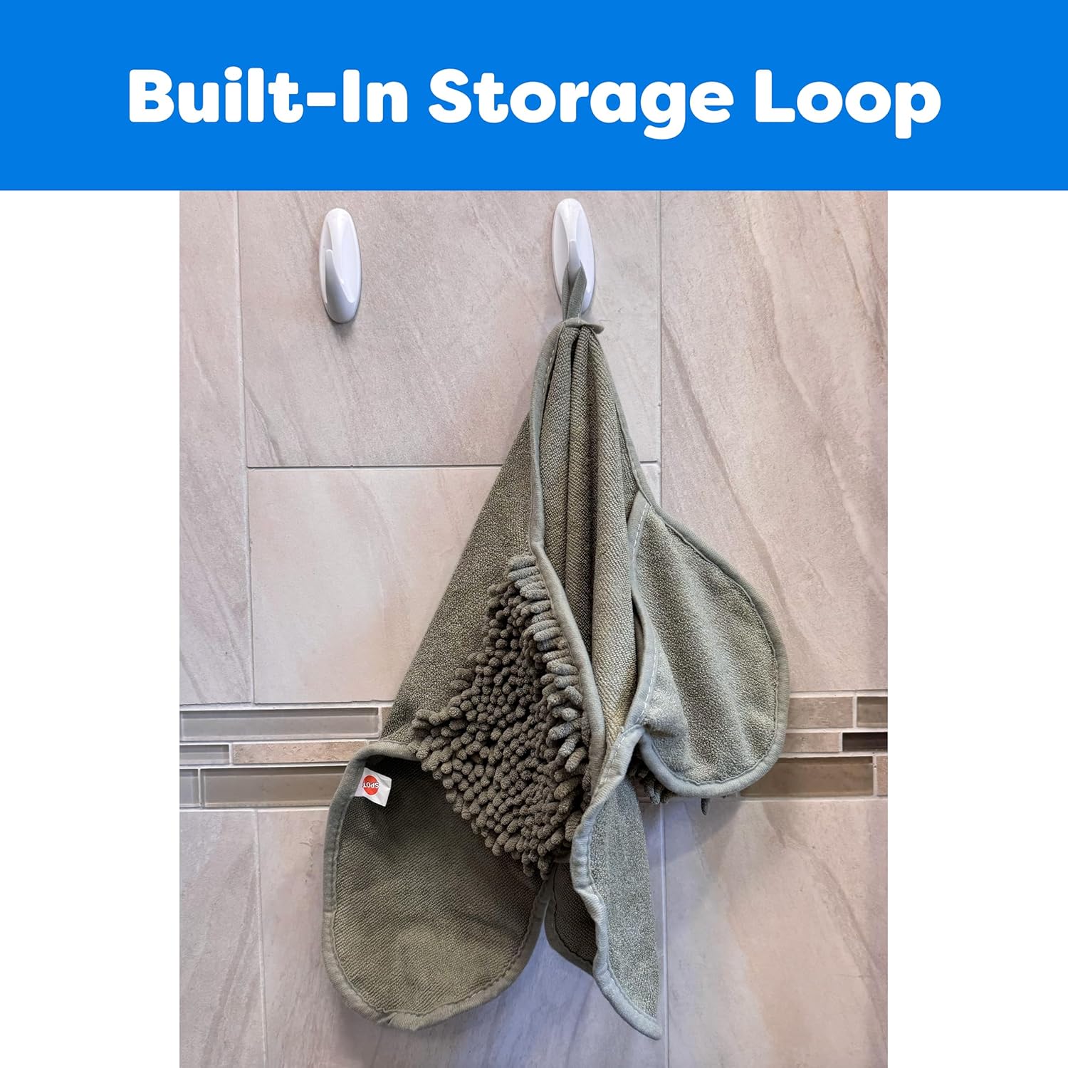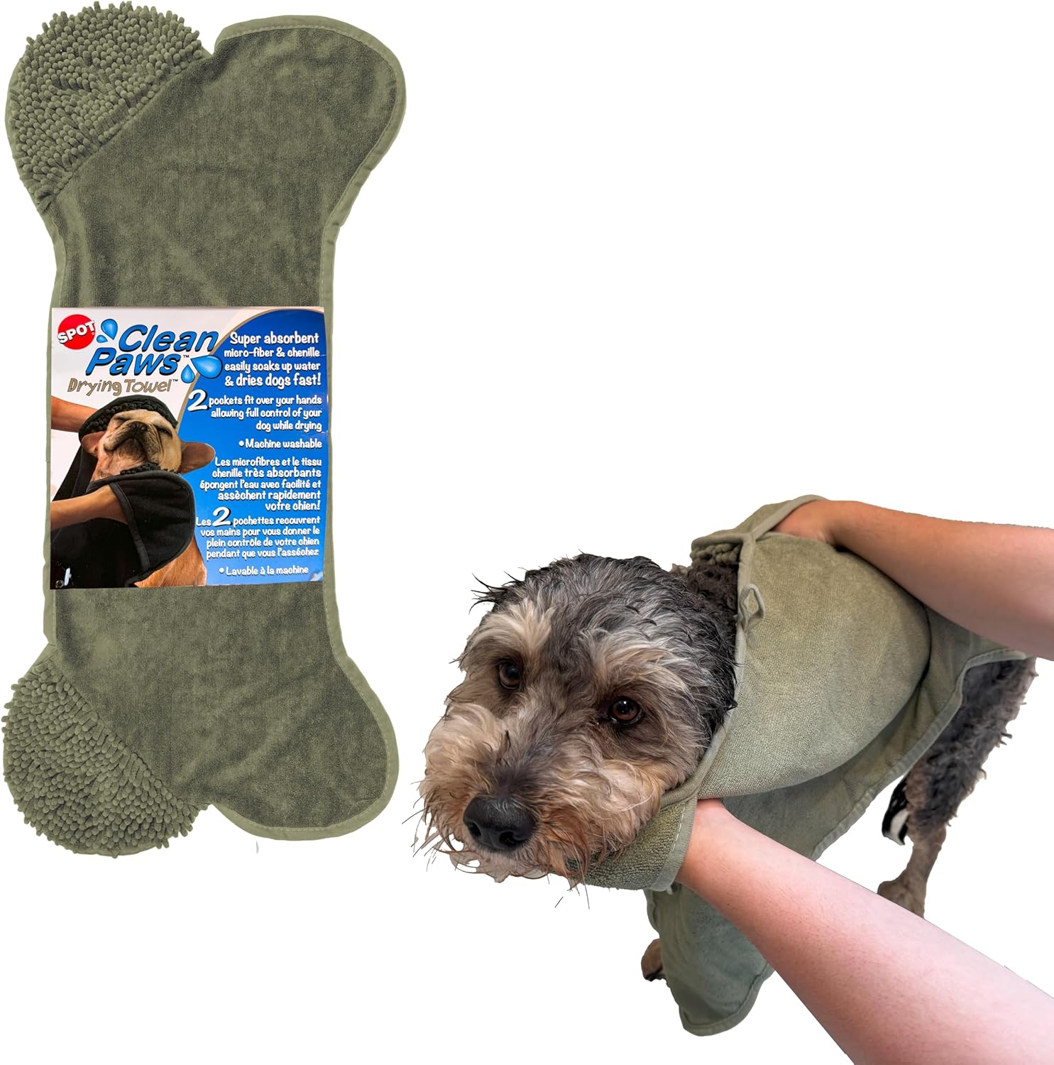 SPOT Clean Paws Chenille Microfiber Dog Towel, Super Absorbent with Corner Hand Pockets, Dries Wet Paws & Body Fast, Machine Washable