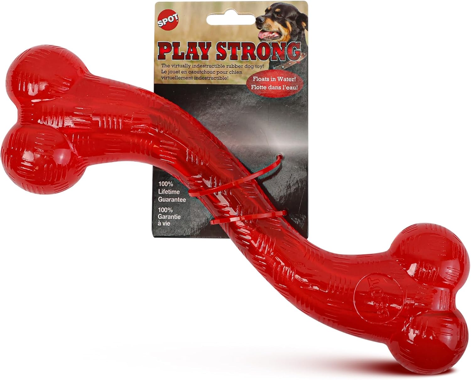 SPOT Play Strong S-Shaped Bone Dog Toy | Interactive Durable Rubber Dog Toy for Aggressive Chewers | Hollow Center Ideal for Treats | 12”, Red