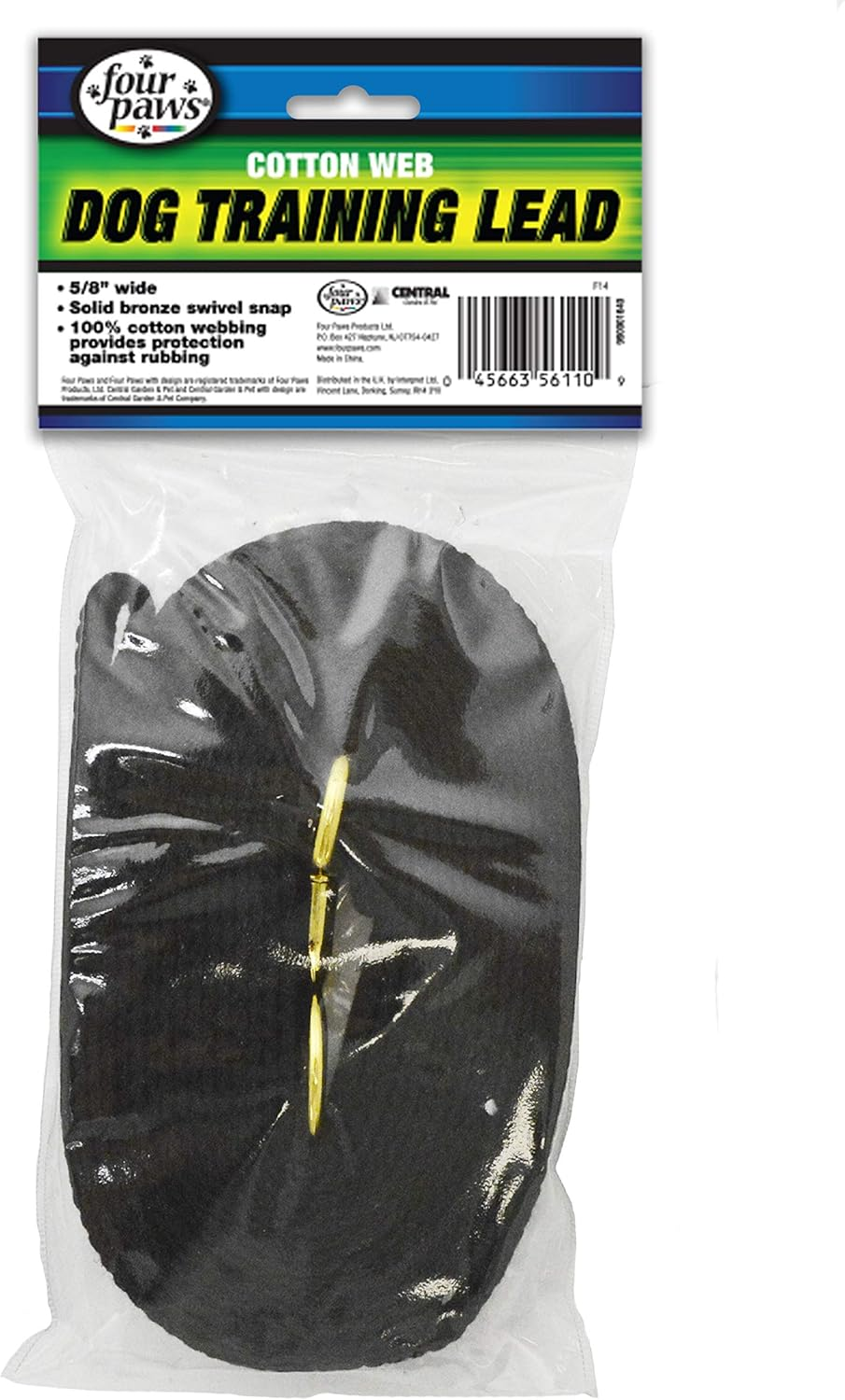 Four Paws® Cotton Web Dog Training Lead Black Color 10 Foot