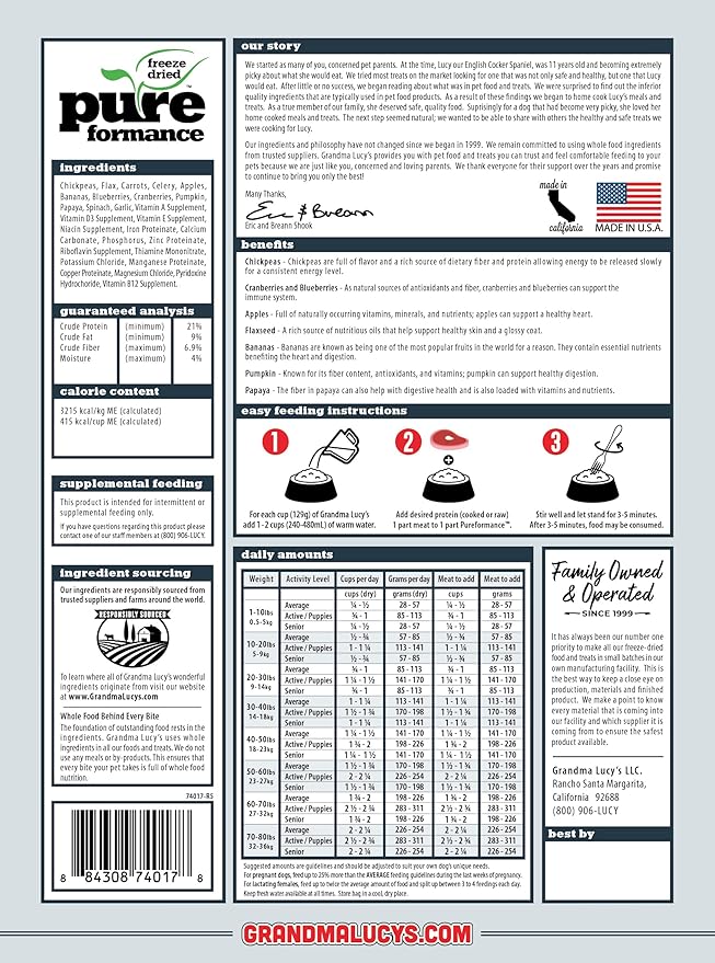 Grandma Lucy’s® Pureformance™ Freeze Dried Grain Free Pre-Mix Recipe Dog Food