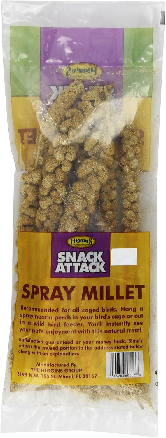 t is Non-GMO, grown free of pesticides and hand selected at harvest. Higgins® Spray Millet is sun-dried and packaged without the use of preservatives. Spray Millet is a great, natural foraging treat full of nutrients and easy to digest!.