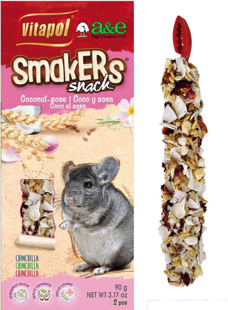 A&E Cage Co. Smackers Treat Sticks for Chinchilla- Coconut & Rose Petal Flavor,Multi Colored,ZVP-1605 1 ea