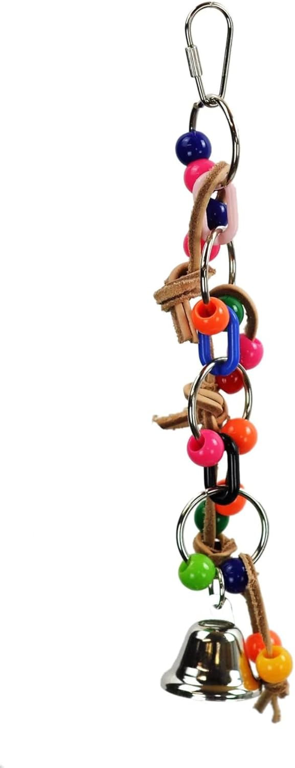A&E CAGE Company 001122 Happy Beaks Plst Chain W/Leather & Ball Bird Toy Assorted, 2X10 in