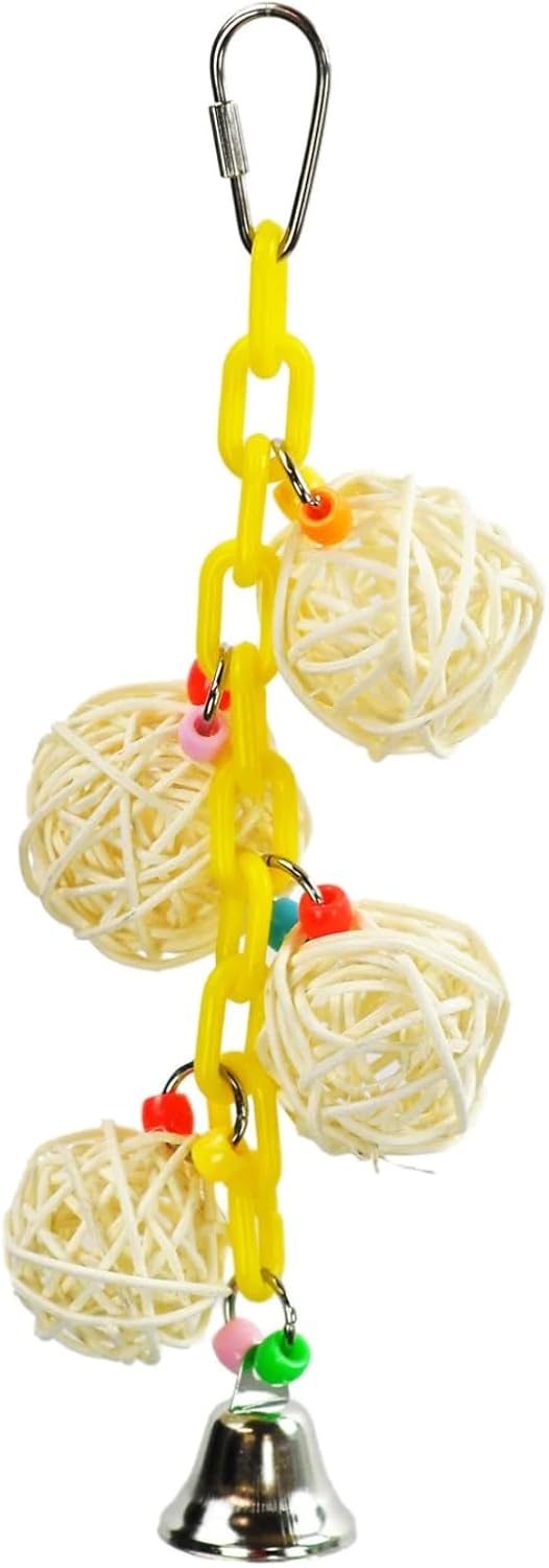 A&E Cage Company 4 Vine Balls on Chain w/Bell, 9.06" x 3.54" x 3.54" Natural Vine/Plastic
