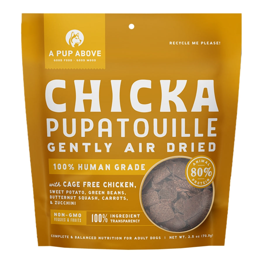 Chicken, chicken heart, chicken gizzard, chicken liver, barley, oats, dried sweet potato, pork plasma, dried green beans, dried butternut squash, dried carrots, dried zucchini, dried cauliflower, apple cider vinegar, rice bran, celery, preservative [mixed tocopherols], thyme, parsley, salmon oil, cod liver oil, turmeric, minerals [calcium carbonate, dicalcium phosphate, sodium bicarbonate, potassium chloride, magnesium oxide, zinc amino acid chelate, choline bitartrate, iron amino acid chelate, potassium iodide, calcium pantothenate, manganese amino acid chelate, copper amino acid chelate, sodium selenite], vitamins [vitamin E supplement, vitamin B12 supplement, vitamin B3 supplement, vitamin B2 (riboflavin), vitamin B1 (thiamine hydrochloride), vitamin A supplement,