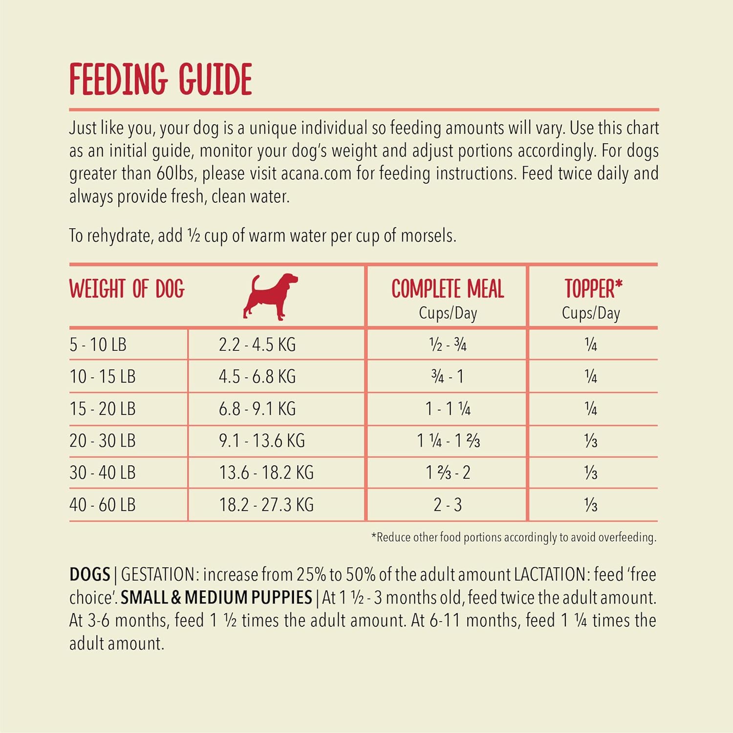 - Crumble over your dog's favorite ACANA kibble for a delicious dog food topper, or mix it with warm water for a nutritious meal