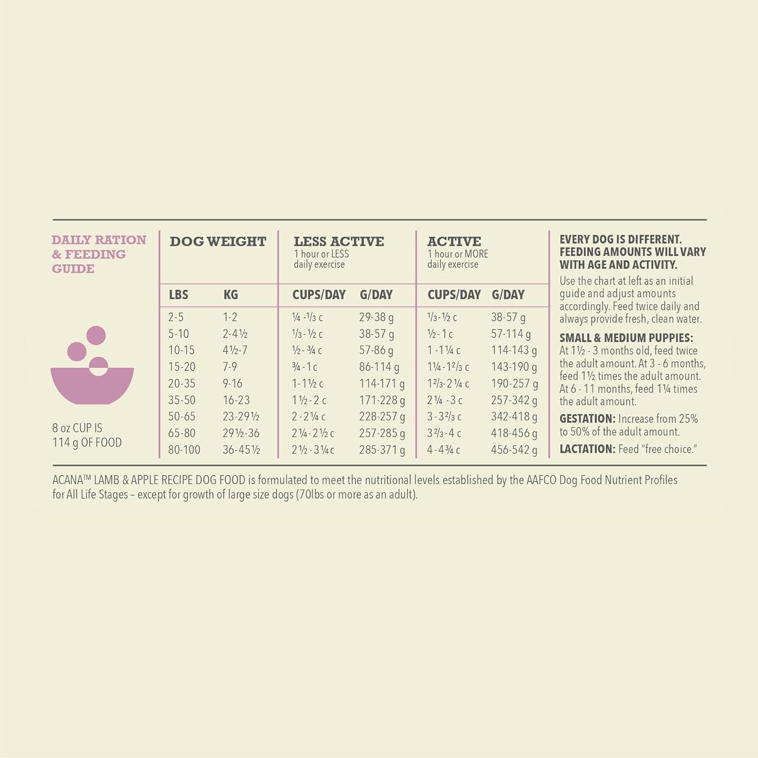 - One (1) 4.5 lb bag of ACANA Singles Limited Ingredient Lamb & Apple Recipe Dry Dog Food