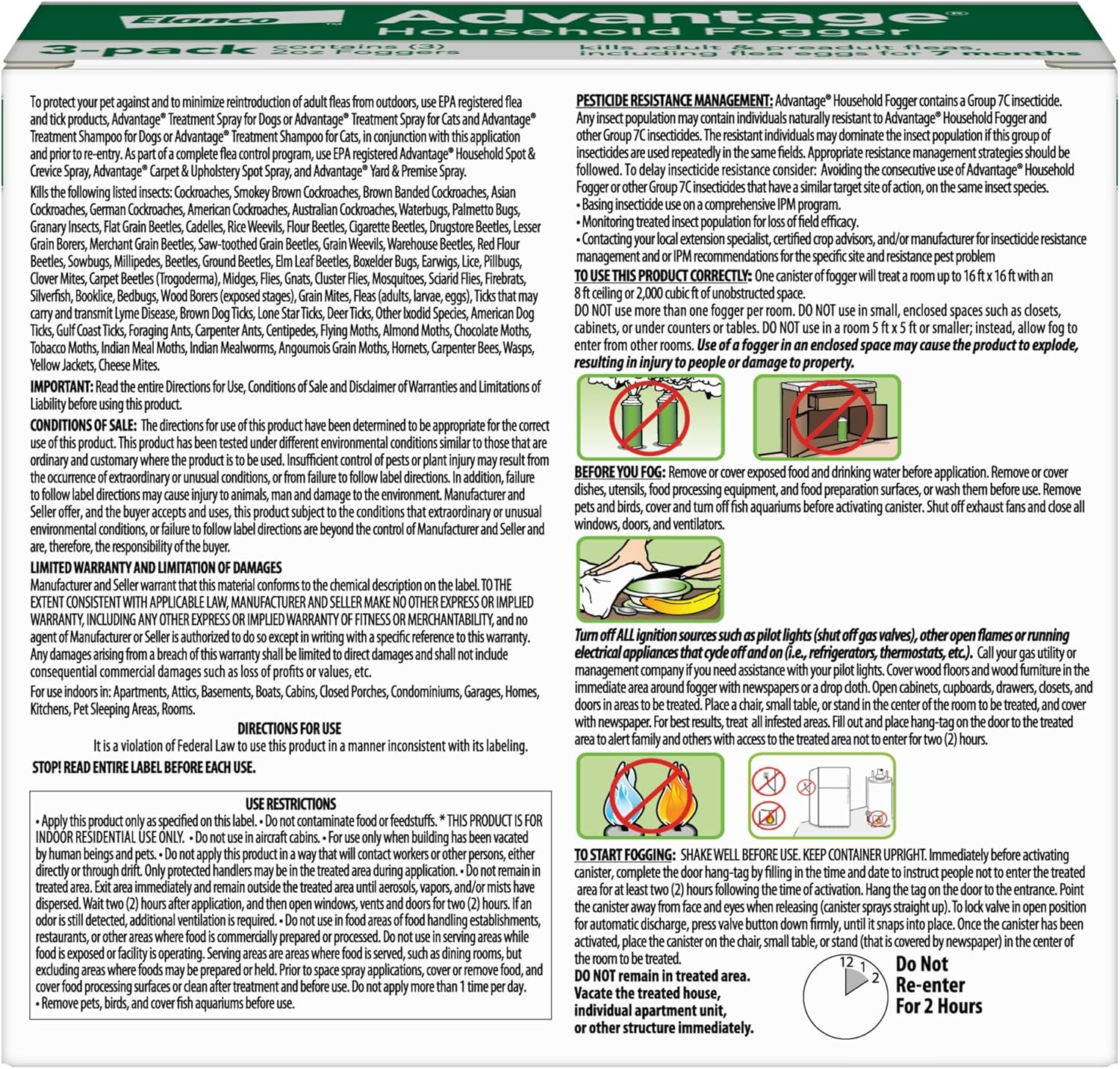 Advantage Household Fogger | Kills Fleas & Ticks | Flea Fogger for Home | 2 oz. Canisters (Pack of 3)