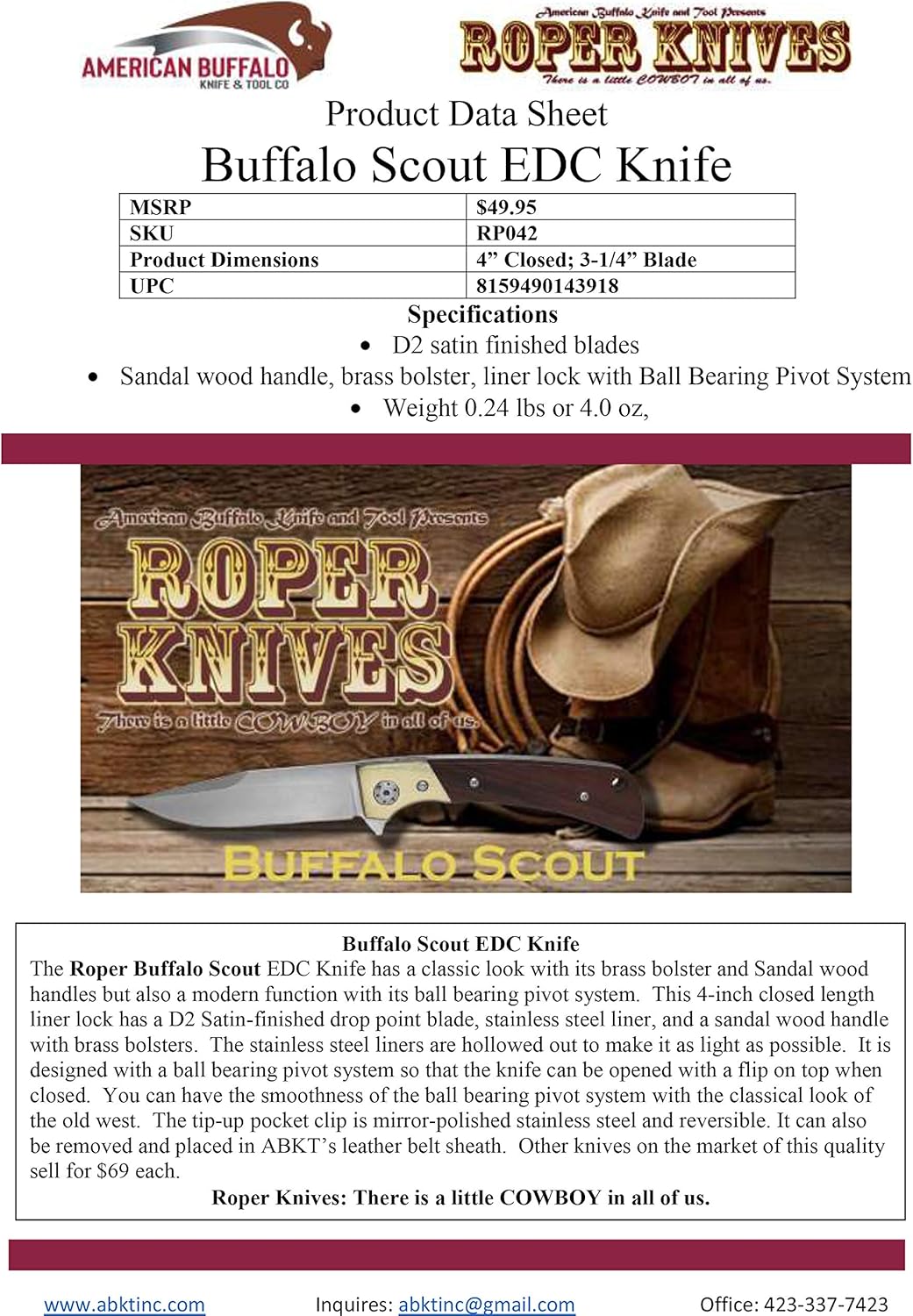 American Buffalo® Scout Ball Bearing Folder – D2 Steel Premium EDC Folding Knife with Sandalwood Handle &...