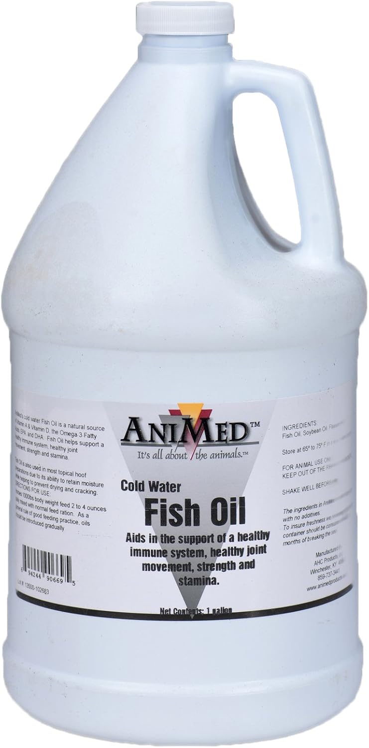 AniMed® Fish Oil is a premium cold-water fish oil supplement, naturally rich in vitamin A, vitamin D, omega fatty acids, EPA, and DHA. Designed to be mixed with your horse’s or dog’s daily feed ration, it supports a healthy immune system, promotes joint flexibility, and helps maintain strength and stamina.