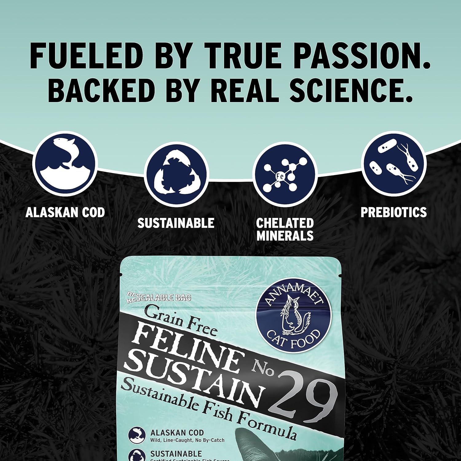 Annamaet Grain-Free Feline Sustain No. 29 Formula Dry Cat Food, (Line-Caught Cod & Free-Range Turkey), 4-lb Bag, Brown