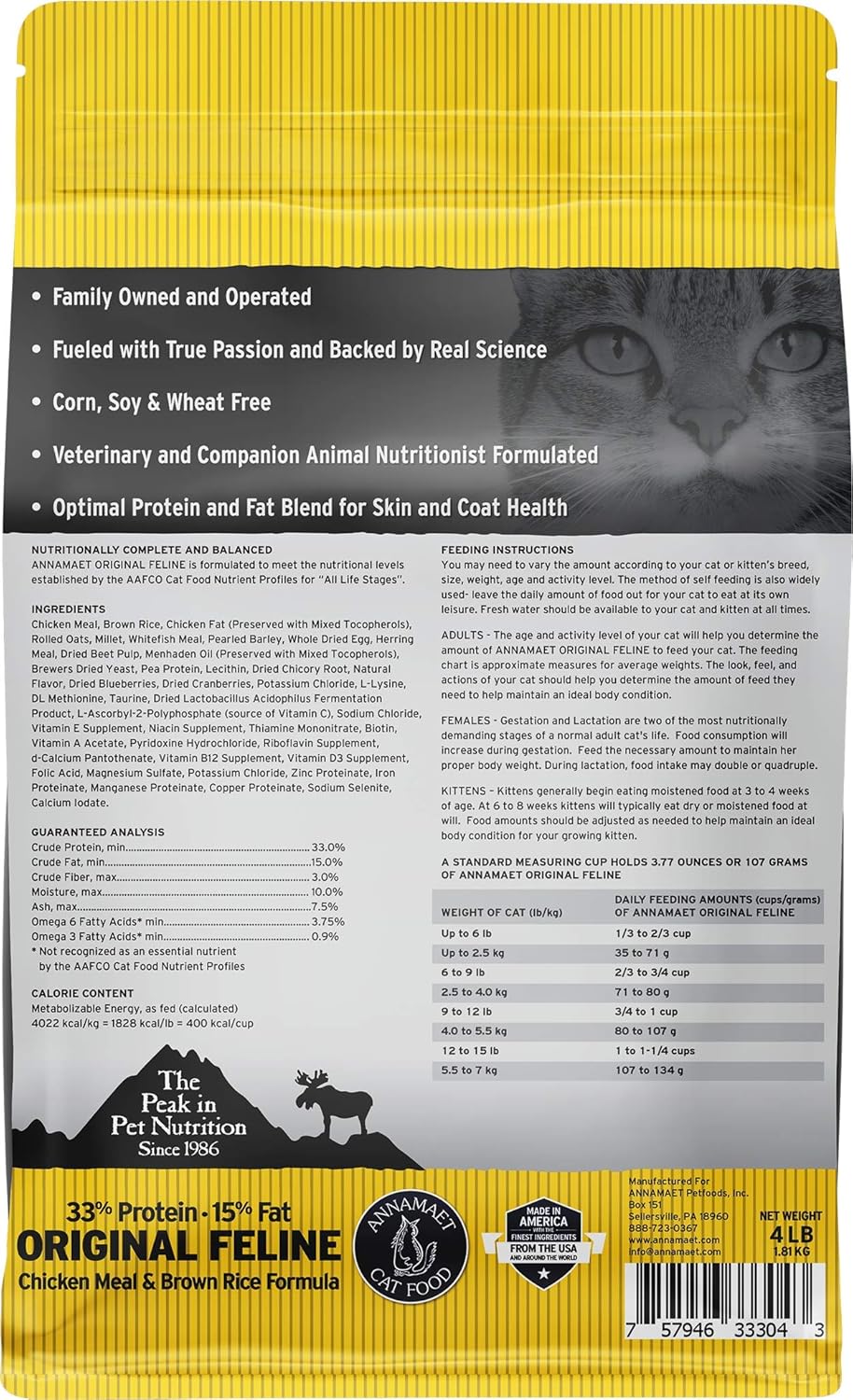 Annamaet Original Feline Formula Dry Cat Food, (Chicken & Brown Rice), 4-lb Bag