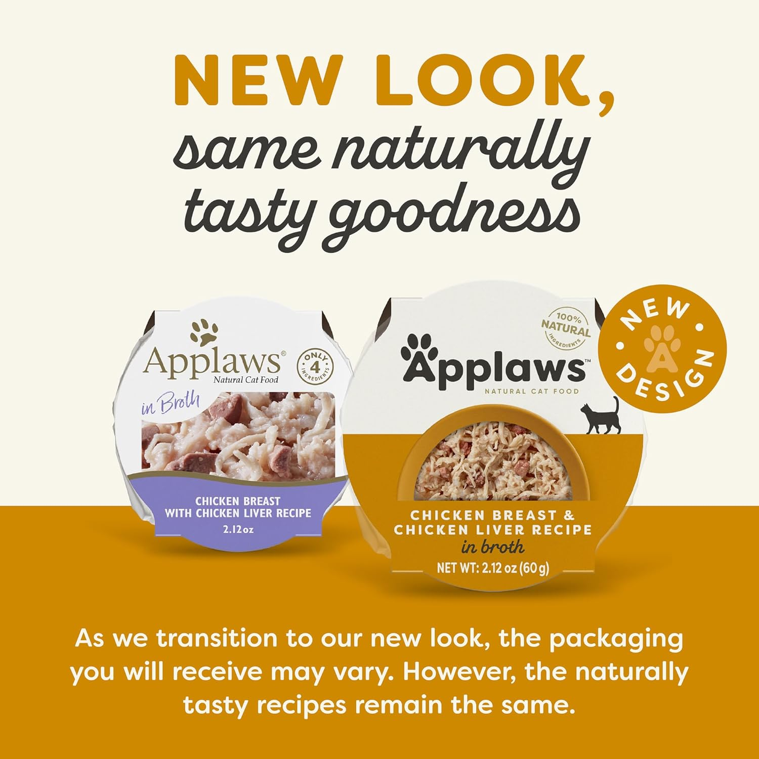 Applaws Natural Wet Cat Food in Broth, Limited Ingredient Cat Food Cups, Grain-Free, Cat Food Pots, No Artificials, 100% Natural Cat Food, Chicken Breast & Chicken Liver in Broth
