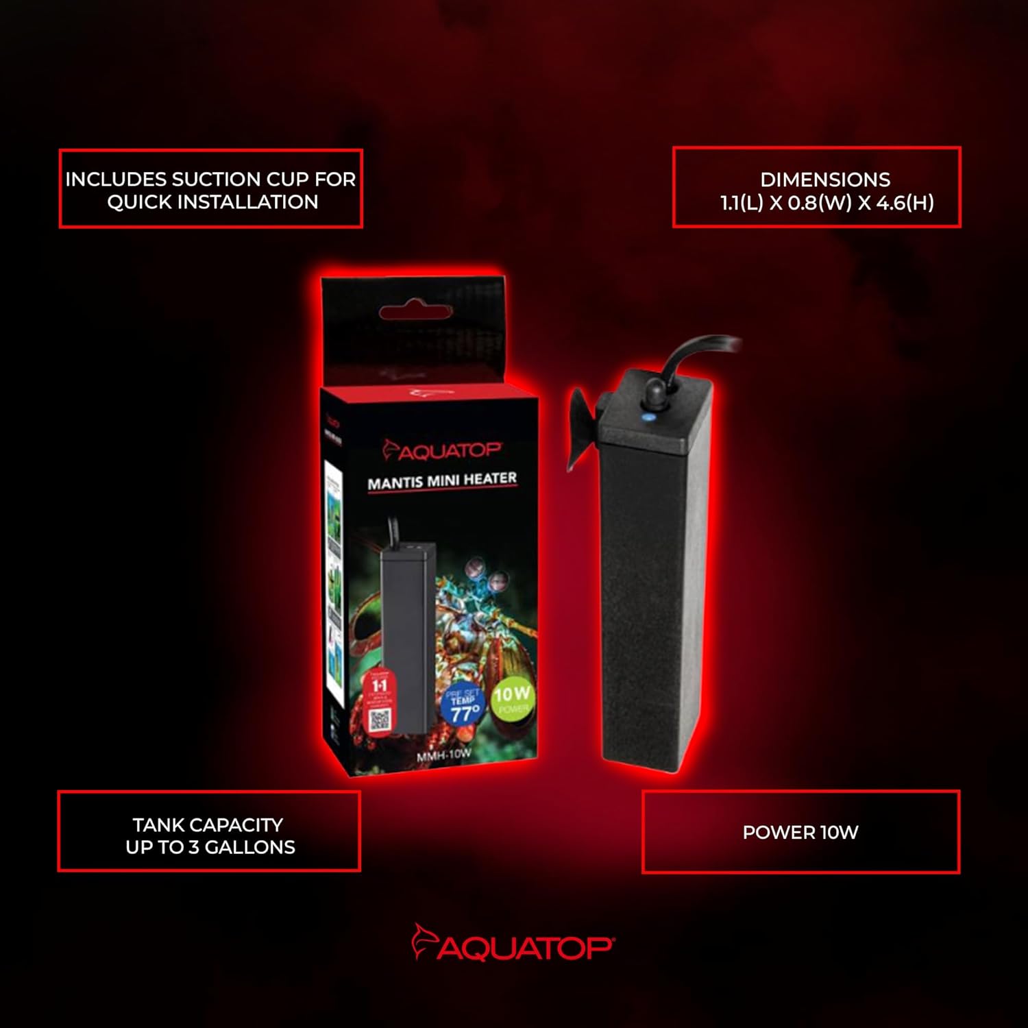 Quick and Reliable Heating: The Aquatop 10W Mantis Mini Heater provides fast and precise heating, maintaining a...