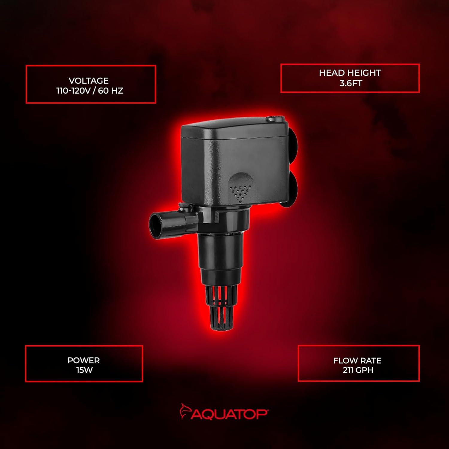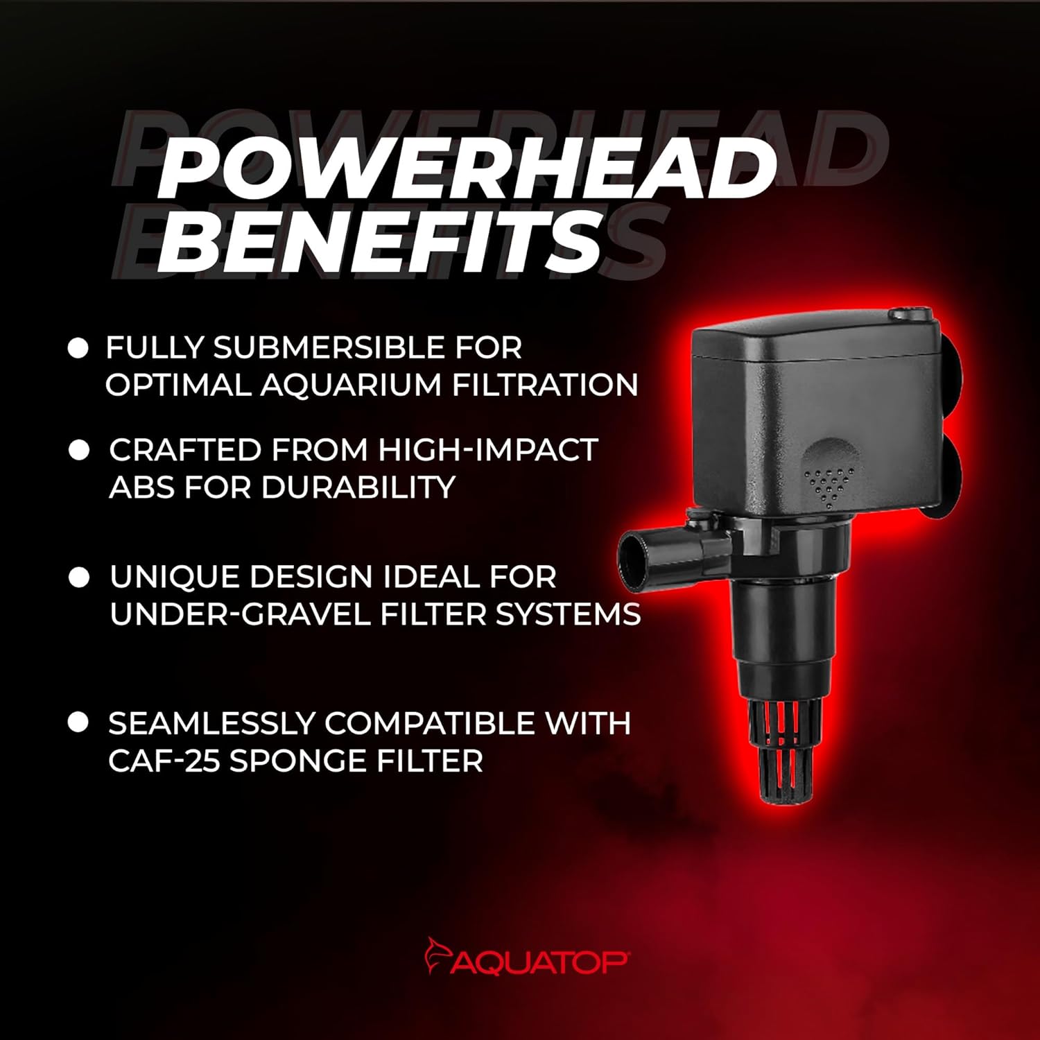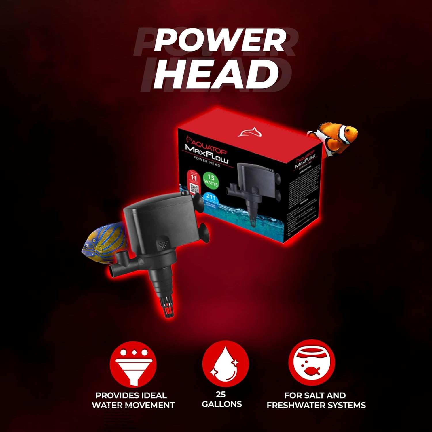 211 GPH Submersible Power Head: The Aquatop MaxFlow Power Head delivers a 211 GPH flow rate, providing...