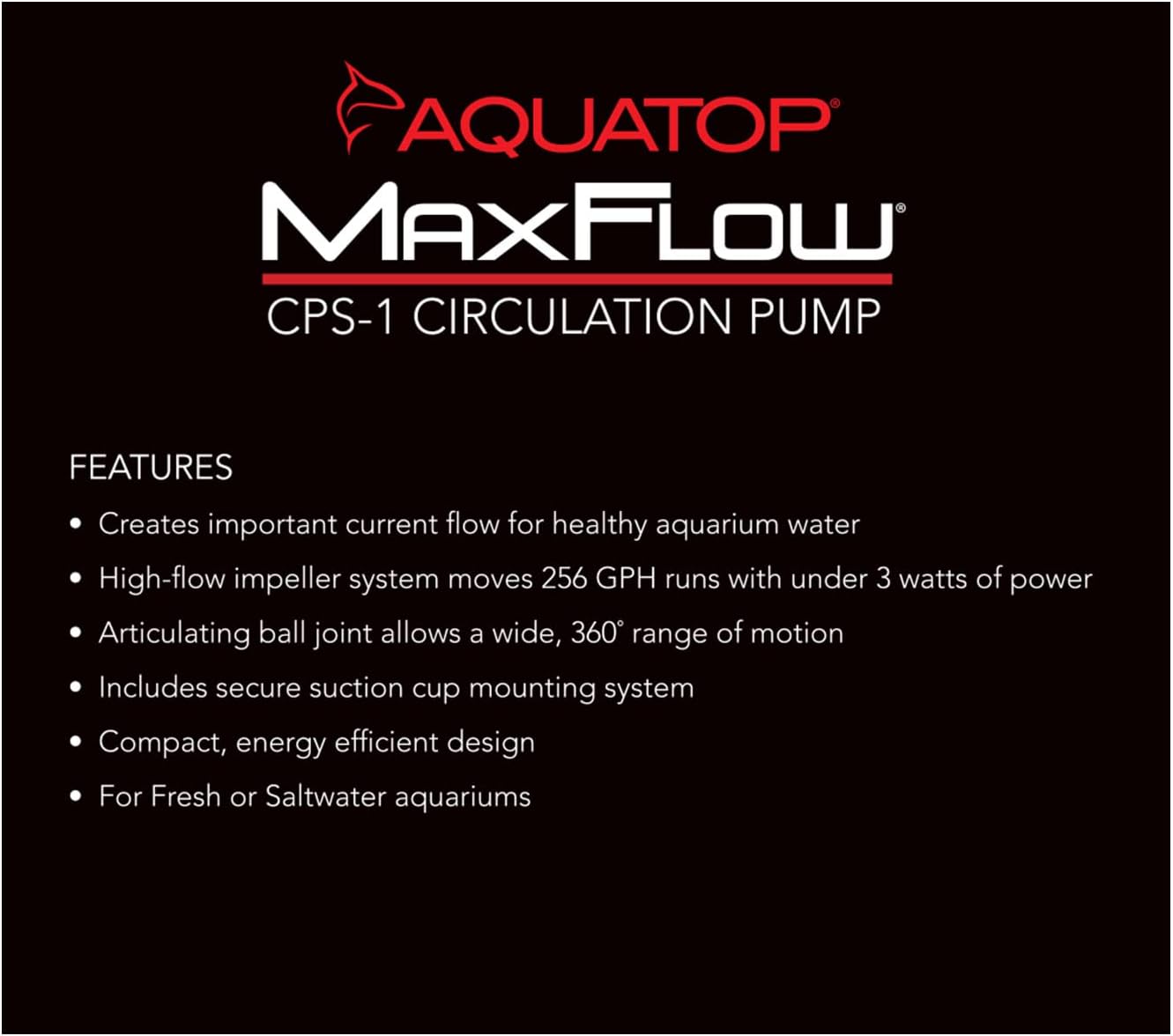 Aquatop MaxFlow Aquarium Circulation Pump 256GPH for Fish Tanks 20 to 40 gallons, CPS-1