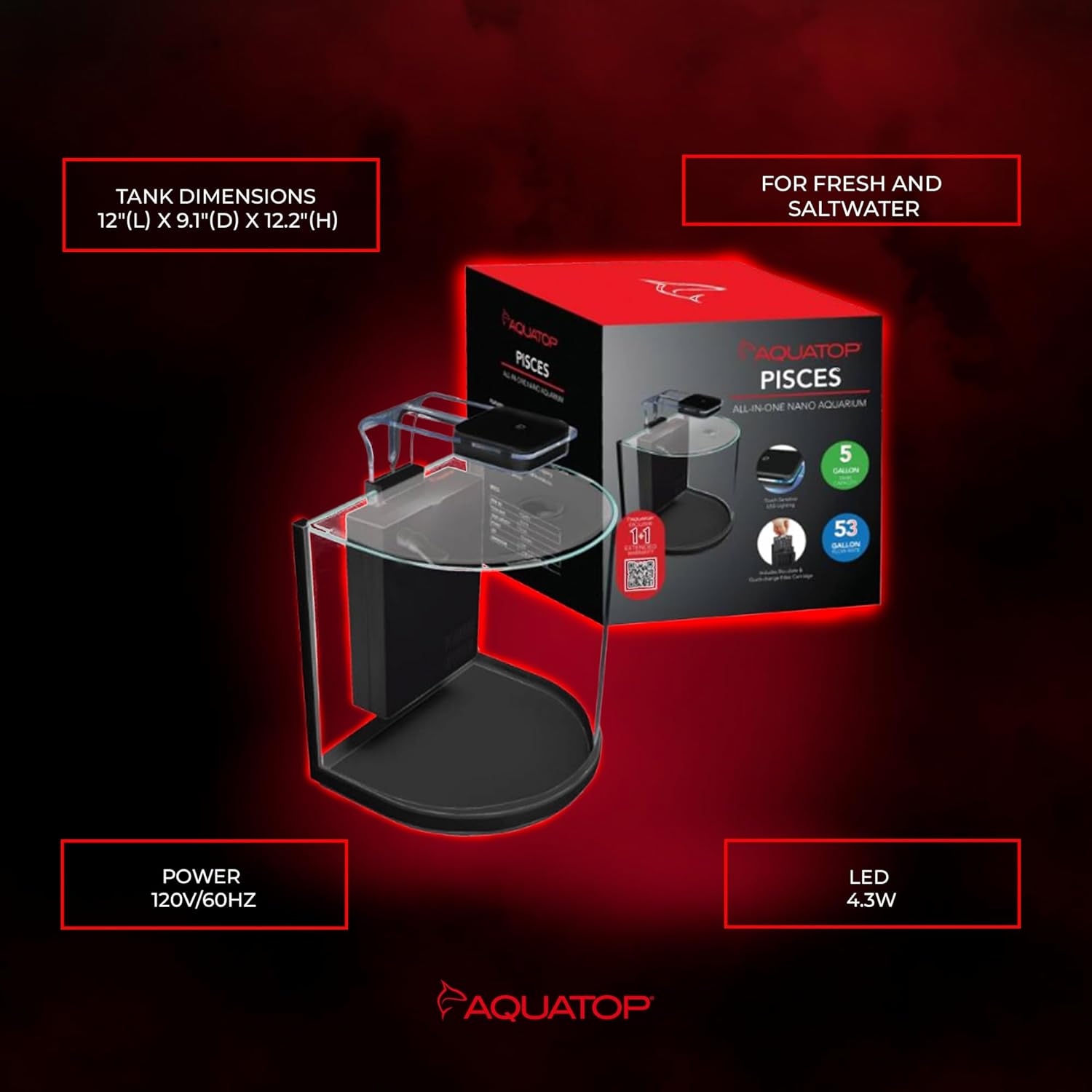 About this item 5-Gallon Curved Bowfront Nano Aquarium: The Aquatop Pisces offers a sleek, semi-circle glass design,...