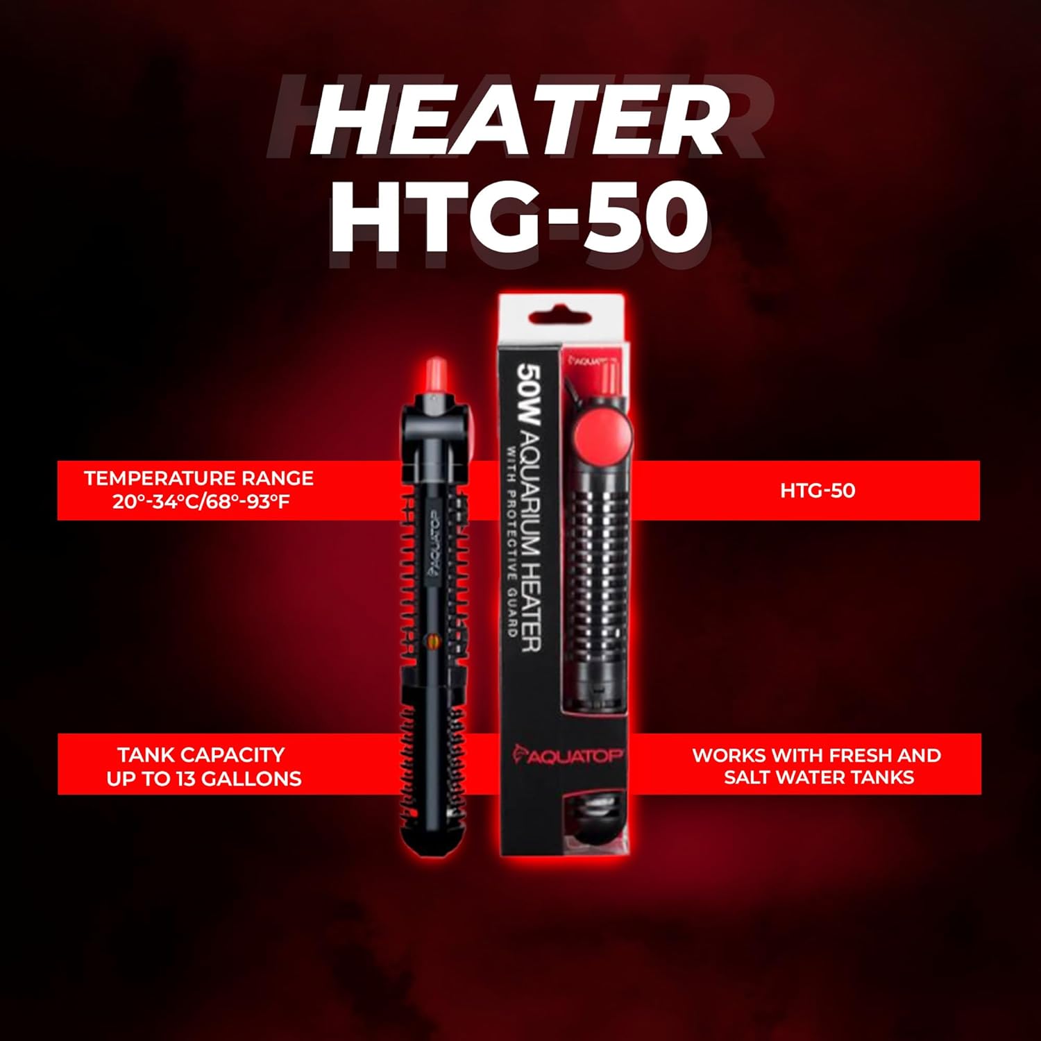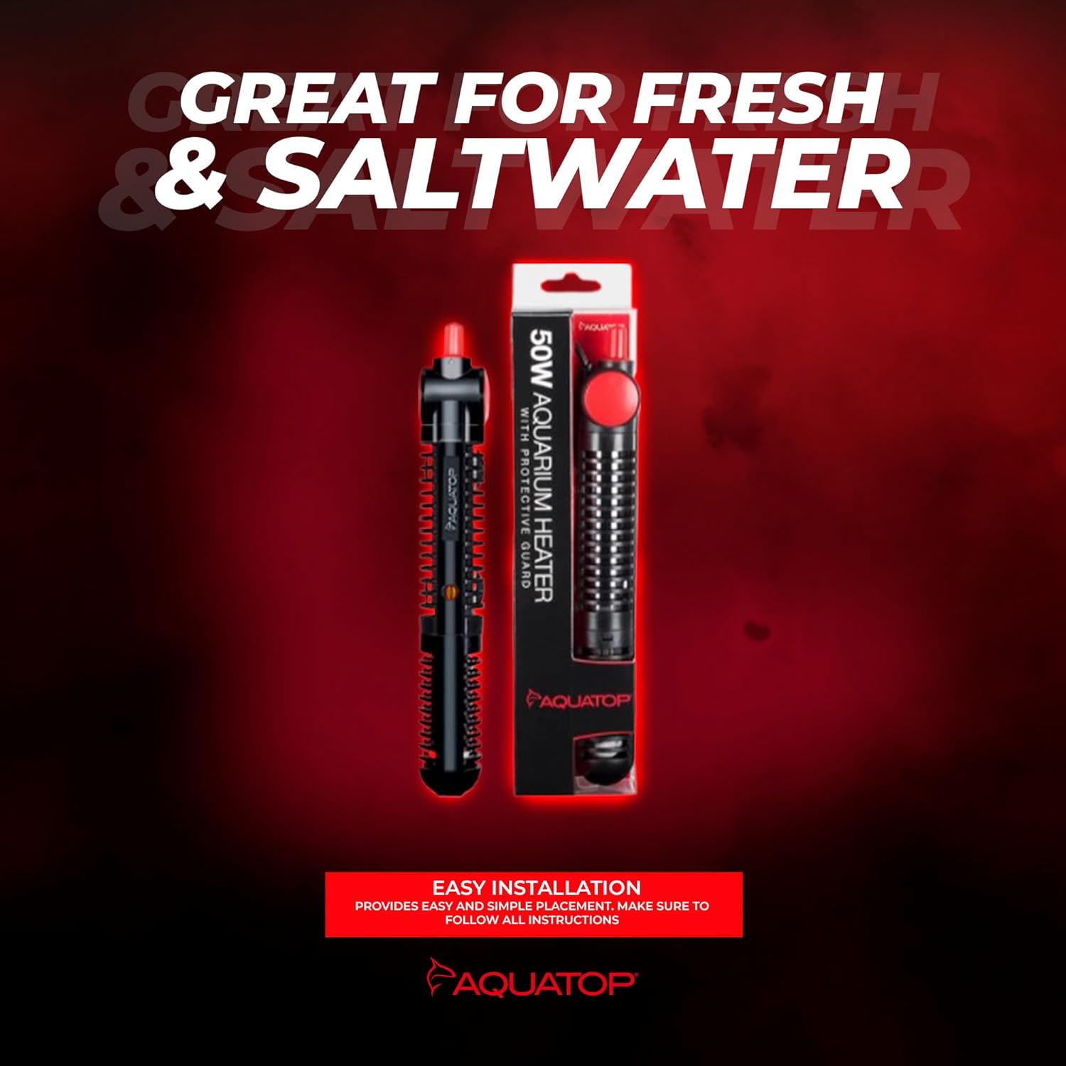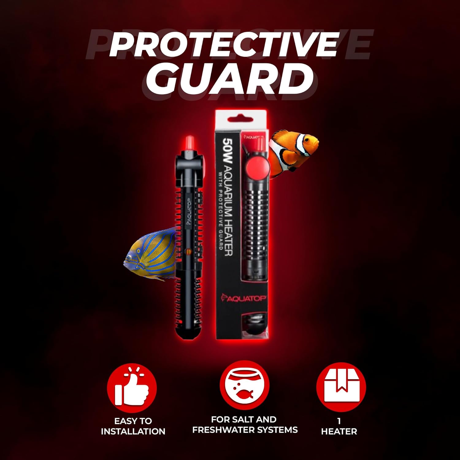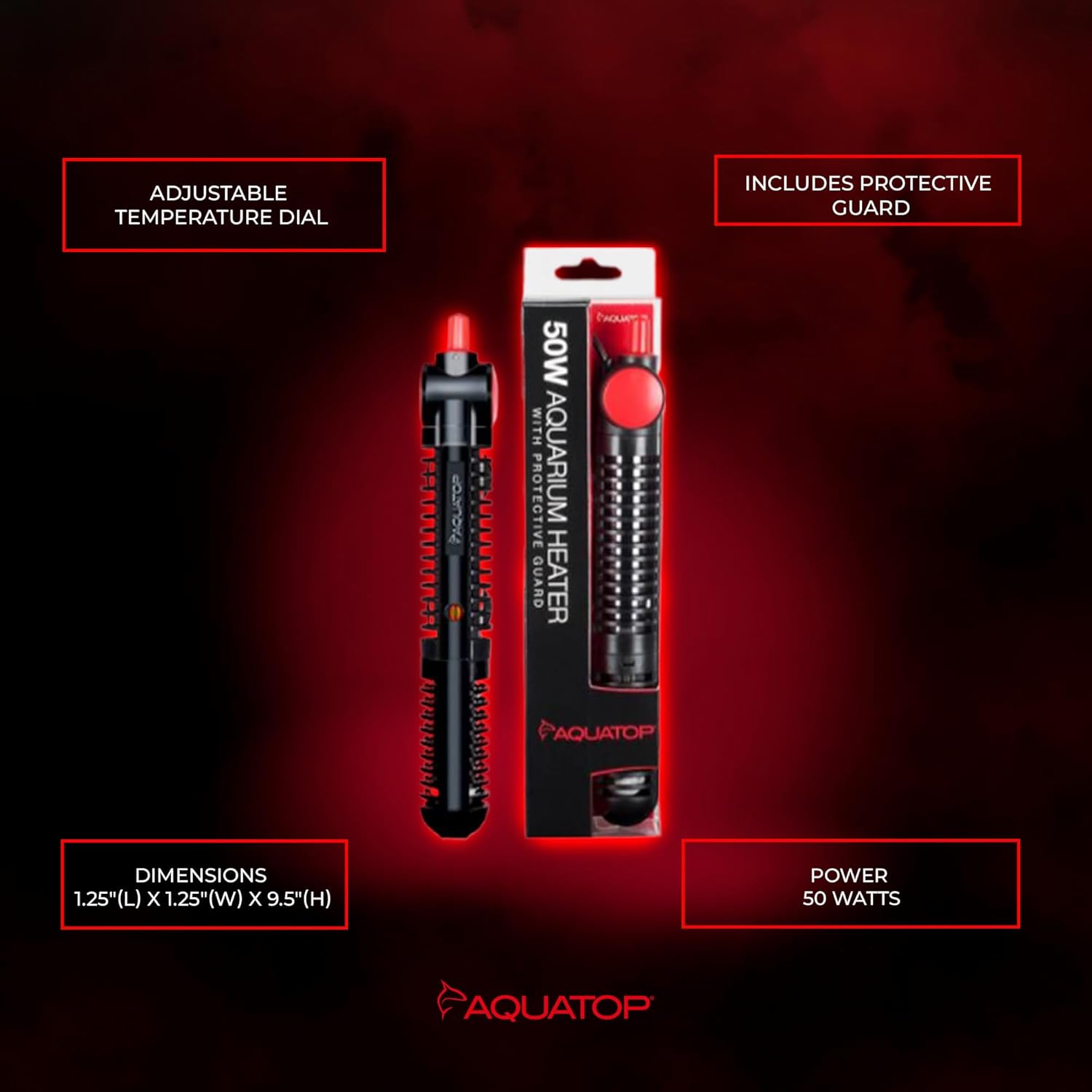 Aquatop Premier Glass Heater with Guard – Submersible for Fish Tanks Up to 13 Gallons – 68-93°F Adjustable Temp – Fresh & Saltwater Use