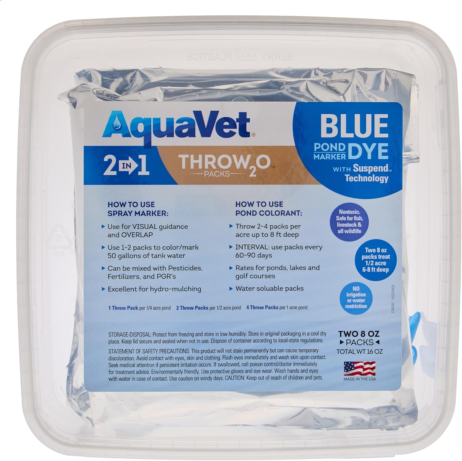 Transform your pond or lake with AquaVet® Blue Pond Dye, engineered with SUSPEND™ Technology to deliver a rich, long-lasting blue hue that enhances water depth and appearance. This advanced dye formula remains in suspension longer than standard pond colorants, ensuring uniform coverage and extended visual impact.