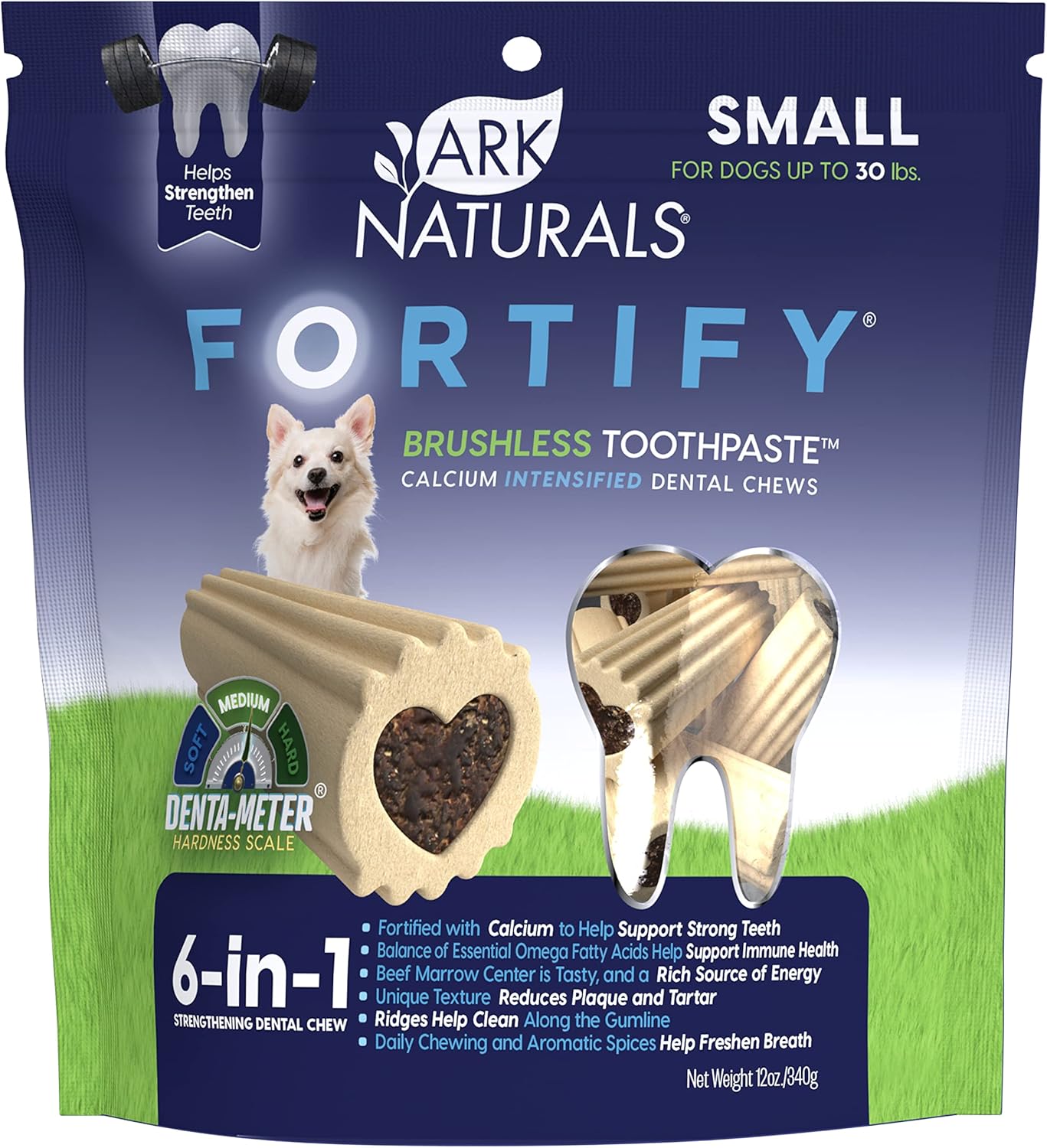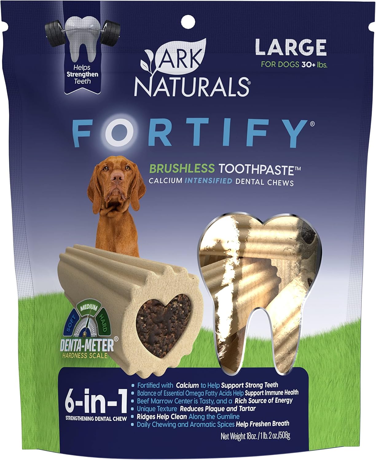 Ark Naturals Fortify Brushless Toothpaste, Dog Dental Chews for Large Breeds, Calcium Plus Omegas Support Strong Teeth and Immune Health