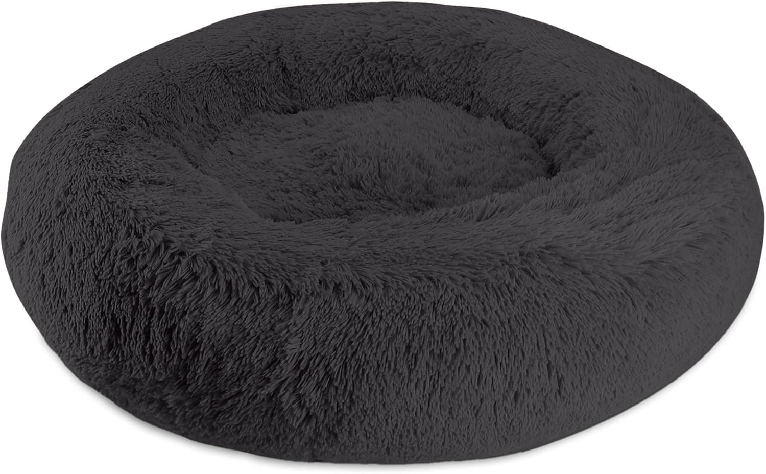 Arlee Donut Round Pet Dog Bed - Memory Foam - Calming Reduce Anxiety - Shaggy Vegan Fur - Assembled USA, Black