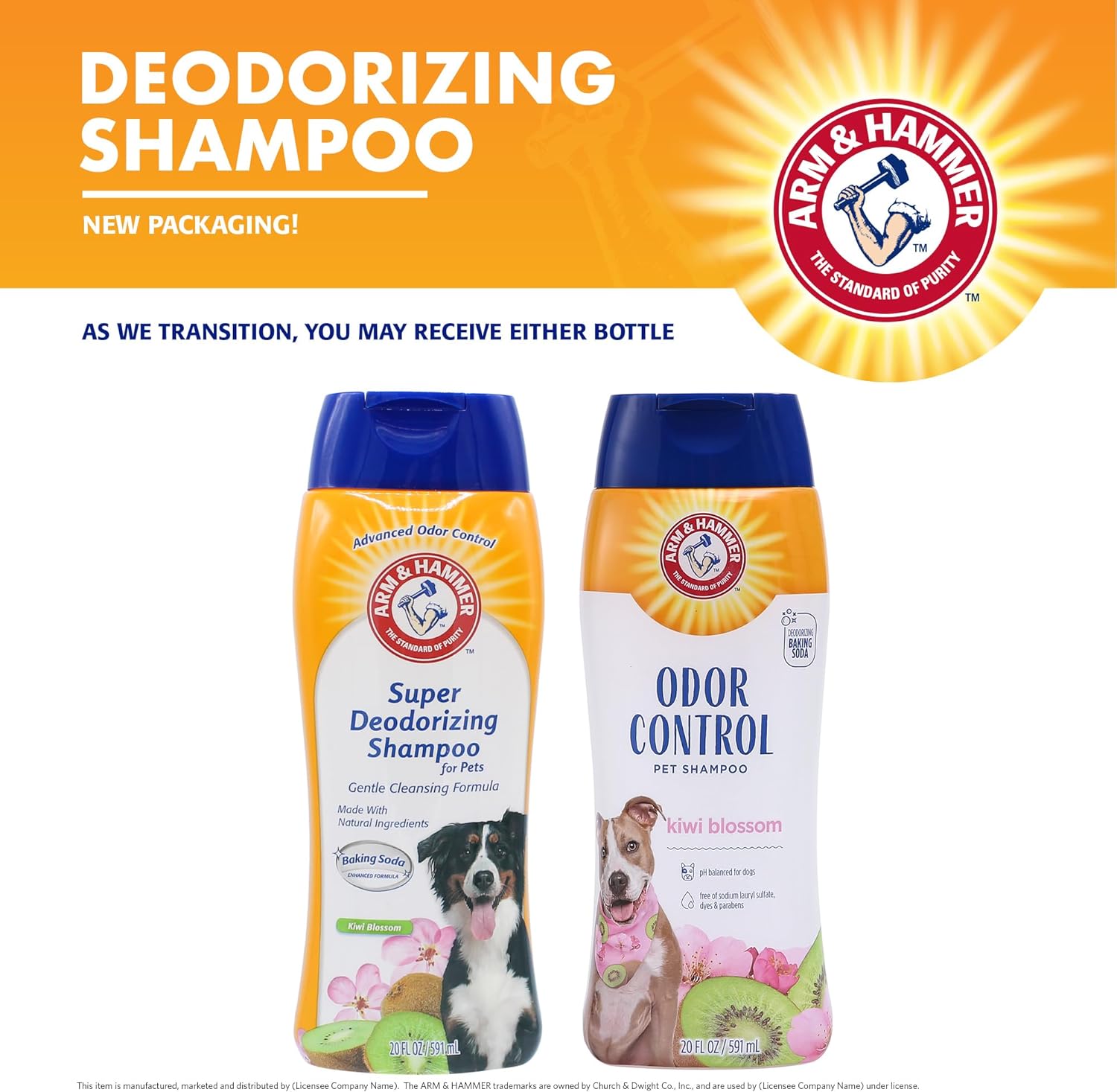 Arm & Hammer Deodorizing Dog Shampoo for Smelly Dogs & Puppies with Baking Soda - Tearless, Moisturizing Dog Shampoo for Sensitive Skin - Dog Odor Shampoo - Kiwi Blossom Scent, 20 Fl Oz
