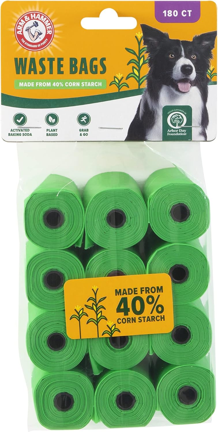 Arm & Hammer Durable Disposable Dog And Cat Waste Bags With Activated Baking Soda, 180 Dog Poop Bags, Plant-Based 9 x 14 Inches