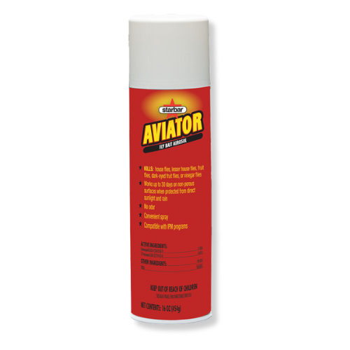 Effective aerosol fly bait for controlling a variety of common flies in and around homes, barns, and animal housing.