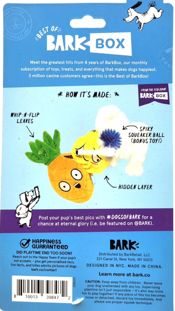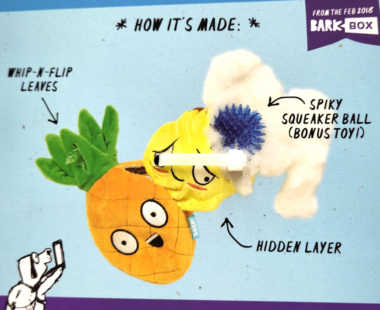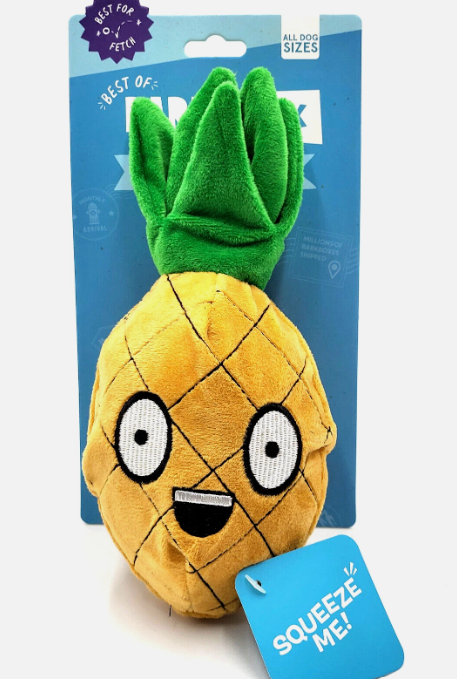 This pineapple dog toy is worth pining over! Not to skewer the girl, but Penny The Pineapple is not all that she seems because when your dog tears through her happy exterior, a bonus toy is revealed. Her whip-n-flip leaves add even more zest.