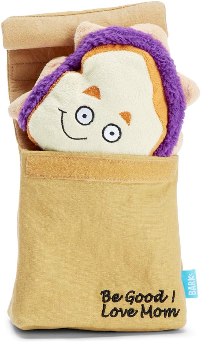 Barkbox 2-in-1 Interactive Plush Puzzle Dog Toys - Squeaky Pet and Puppy Enrichment Toys for Small, Medium, and Large Dogs | Brown Baggin' It PB&J