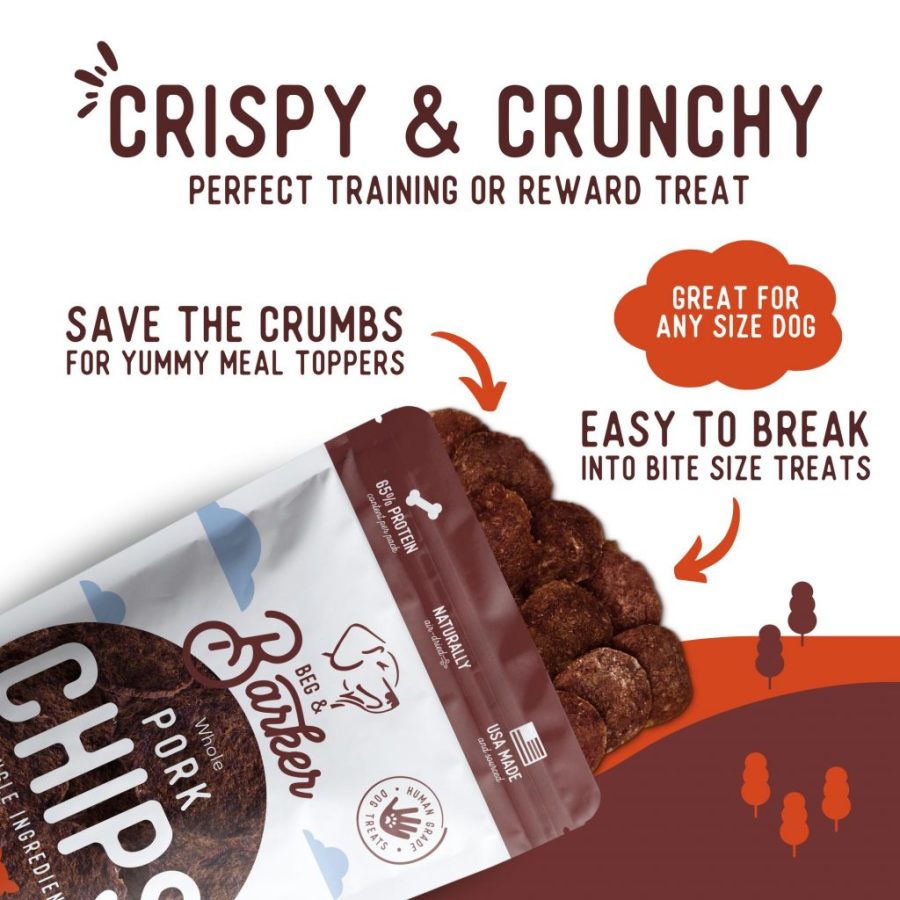 Beg & Barker Pork Chips for Dogs - Single Ingredient Dog Treats Made for Large & Small Dogs Protein Human Grade Dog Treats Made from Real Meat Beef, Made in USA