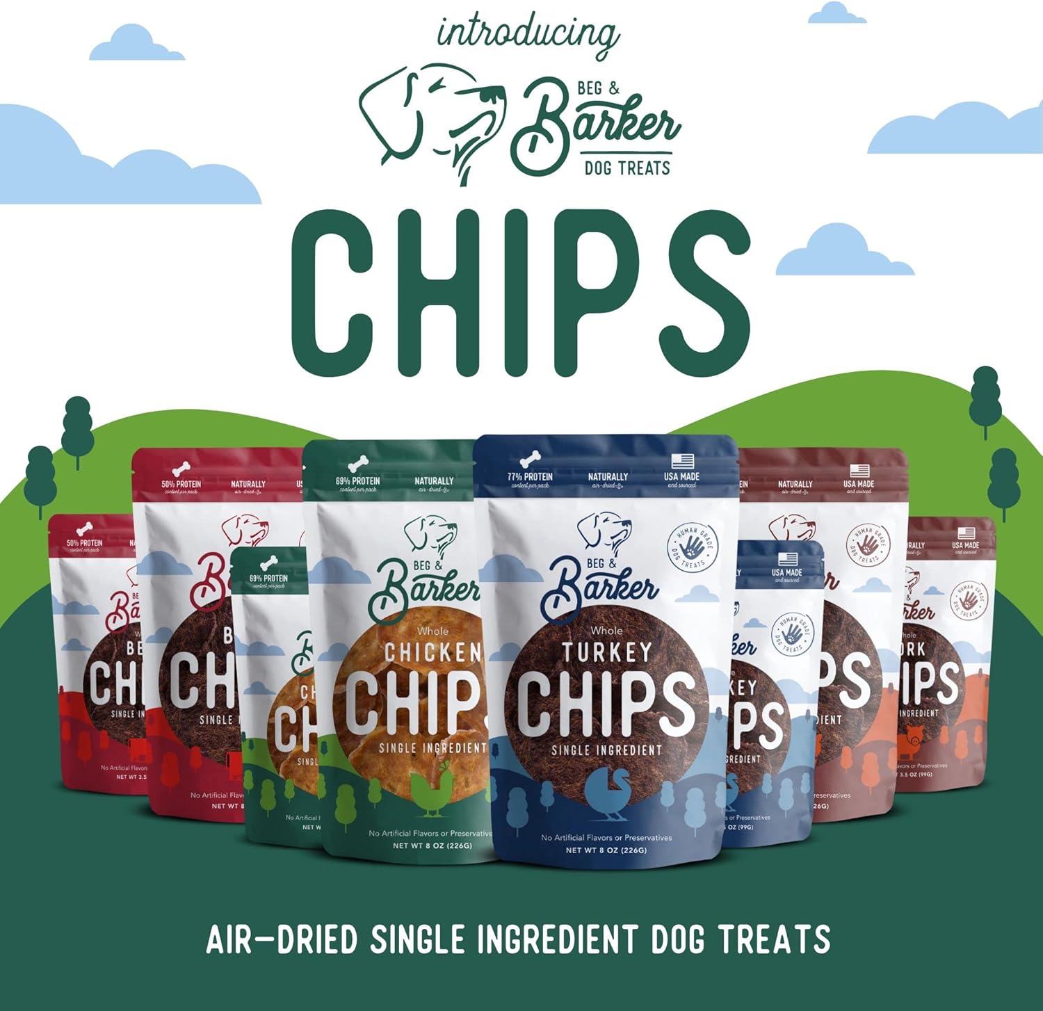 Beg & Barker Chicken Chips for Dogs - Single Ingredient Dog Treats Made for Small and Large Dogs Protein Human Grade Dog Treats Made from Real Meat Chicken, Made in USA