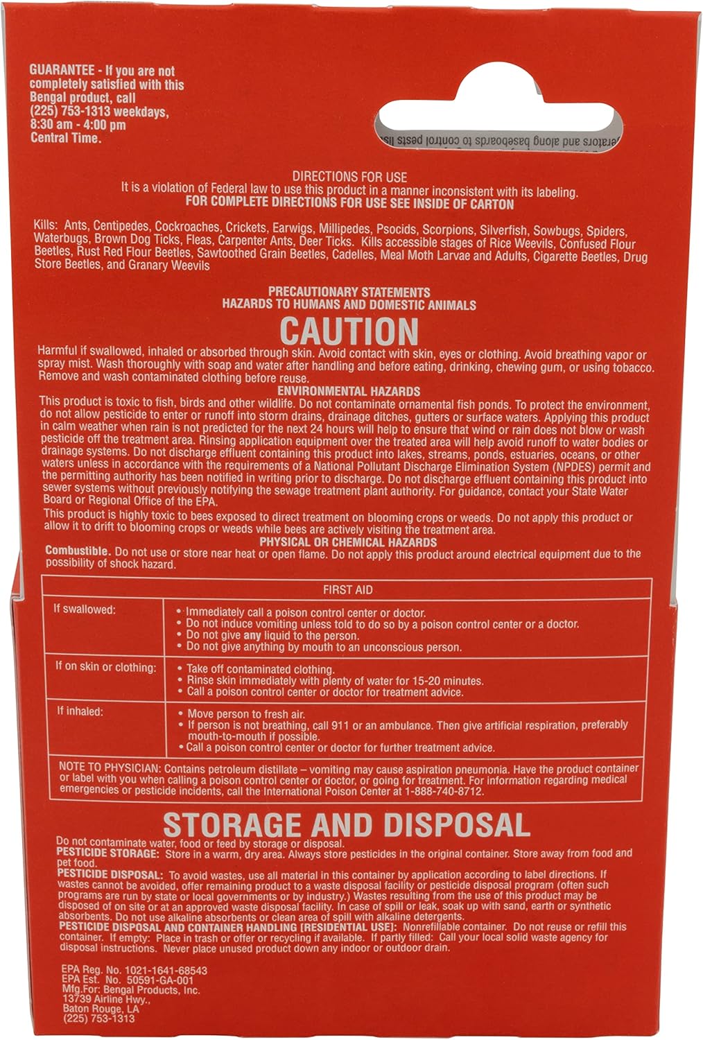 Eliminate tough pests with Bengal® Insecticide Concentrate, a 2 oz. liquid concentrate that mixes with water to make up to 2 gallons of powerful insecticide. Designed for residential, commercial, and industrial use, this formula kills a wide range of insects, including cockroaches, termites, carpenter ants, bees, spiders, crickets, fleas, scorpions, silverfish, water bugs, and fire ants.