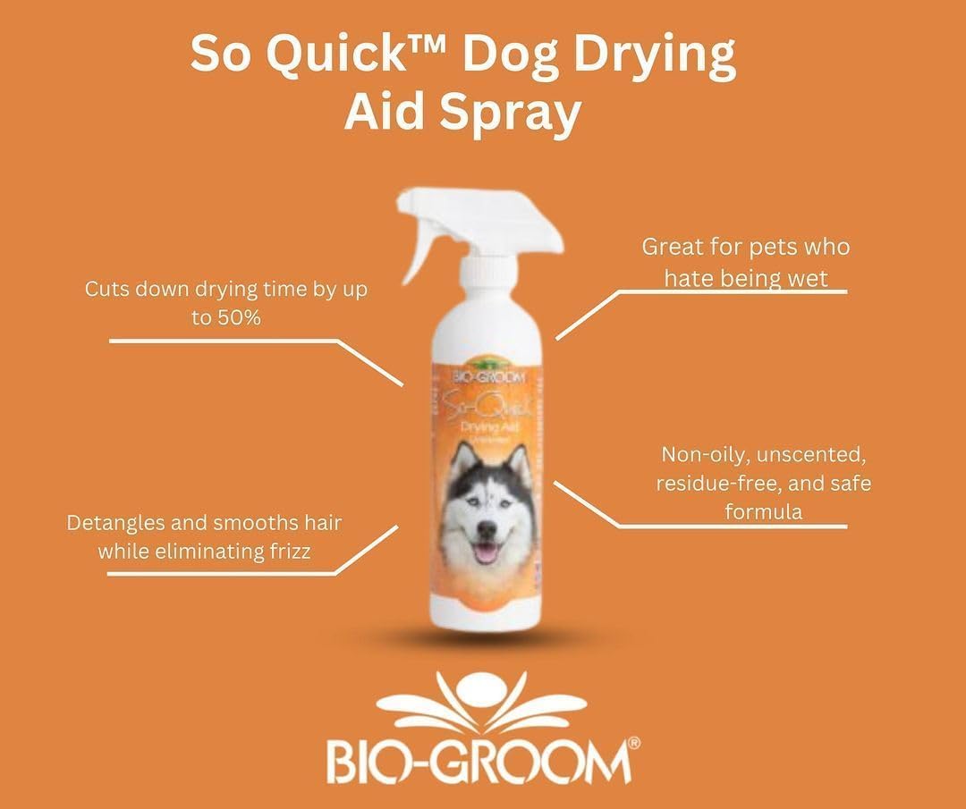 Bio-Groom So Quick Dry Dog Spray - Detangler Spray for Dogs & Cats, Shortens Drying Time, Unscented, Cruelty-Free, Made in USA, Dog Grooming Products