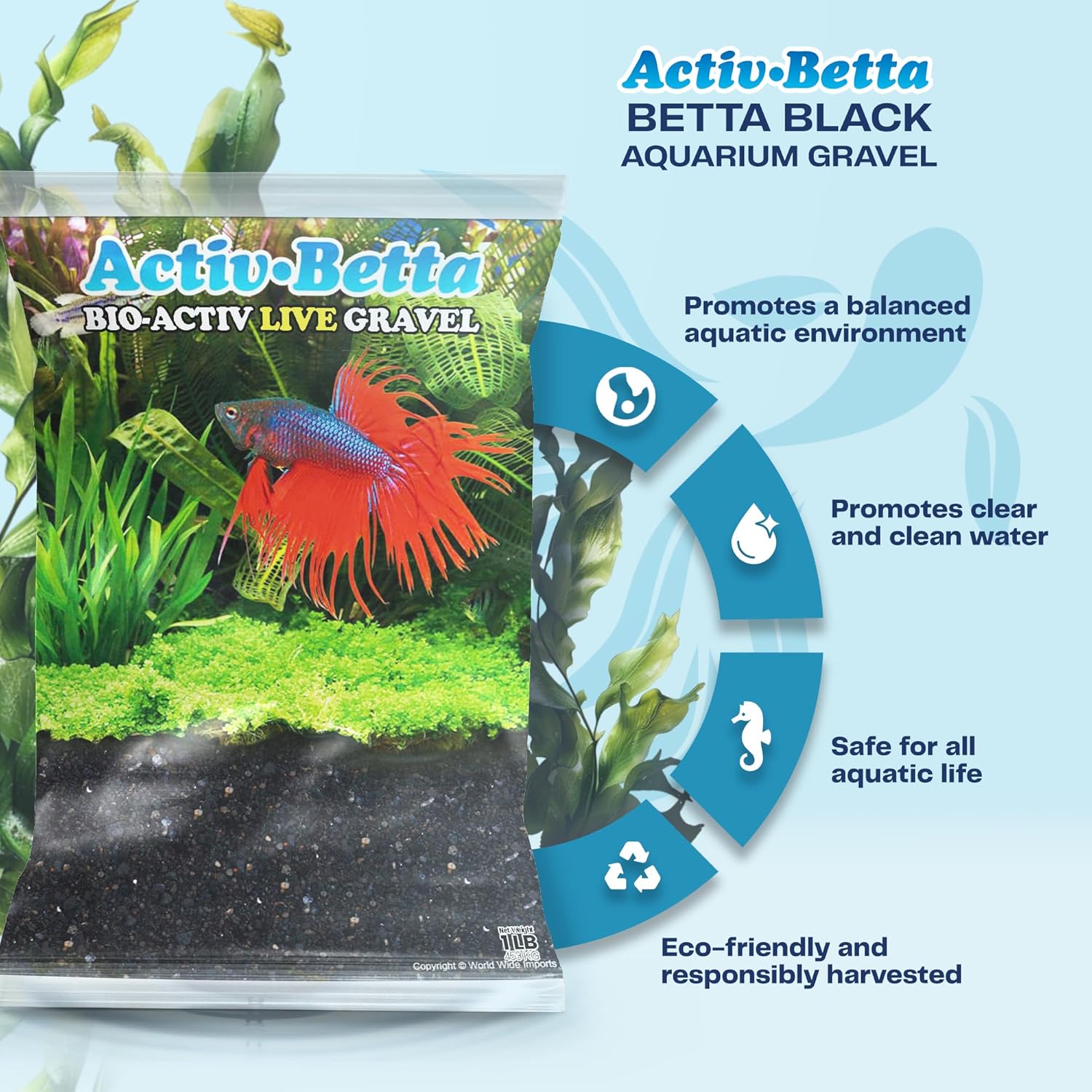 Activ Betta Black Aquarium Gravel - 1 lb - Natural Freshwater Substrate with Live Beneficial Elements - Instant Cycling, Easy Maintenance
