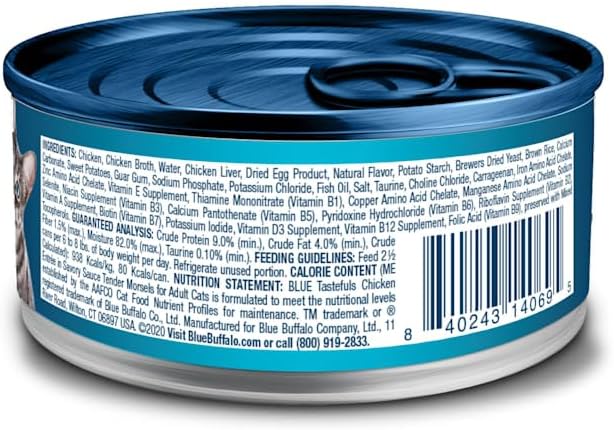 BLUE Tastefuls Natural Flaked Wet Cat Food is a deliciously healthy, highmoisture cat food formulated with real chicken as the #1 ingredient. Blue Buffalo cat food is a great choice for Pet Parents who want to prioritize natural ingredients loaded with flavor for discerning palates. This cat food is formulated without any chicken (or poultry) byproduct meals. It's also free of corn, wheat, soy, and artificial flavors and preservatives. This wet cat food multipack ensures your best friend can enjoy savory and healthy entrees daily. One taste of Blue Buffalo wet cat food is all it takes to keep your cat purring for more.