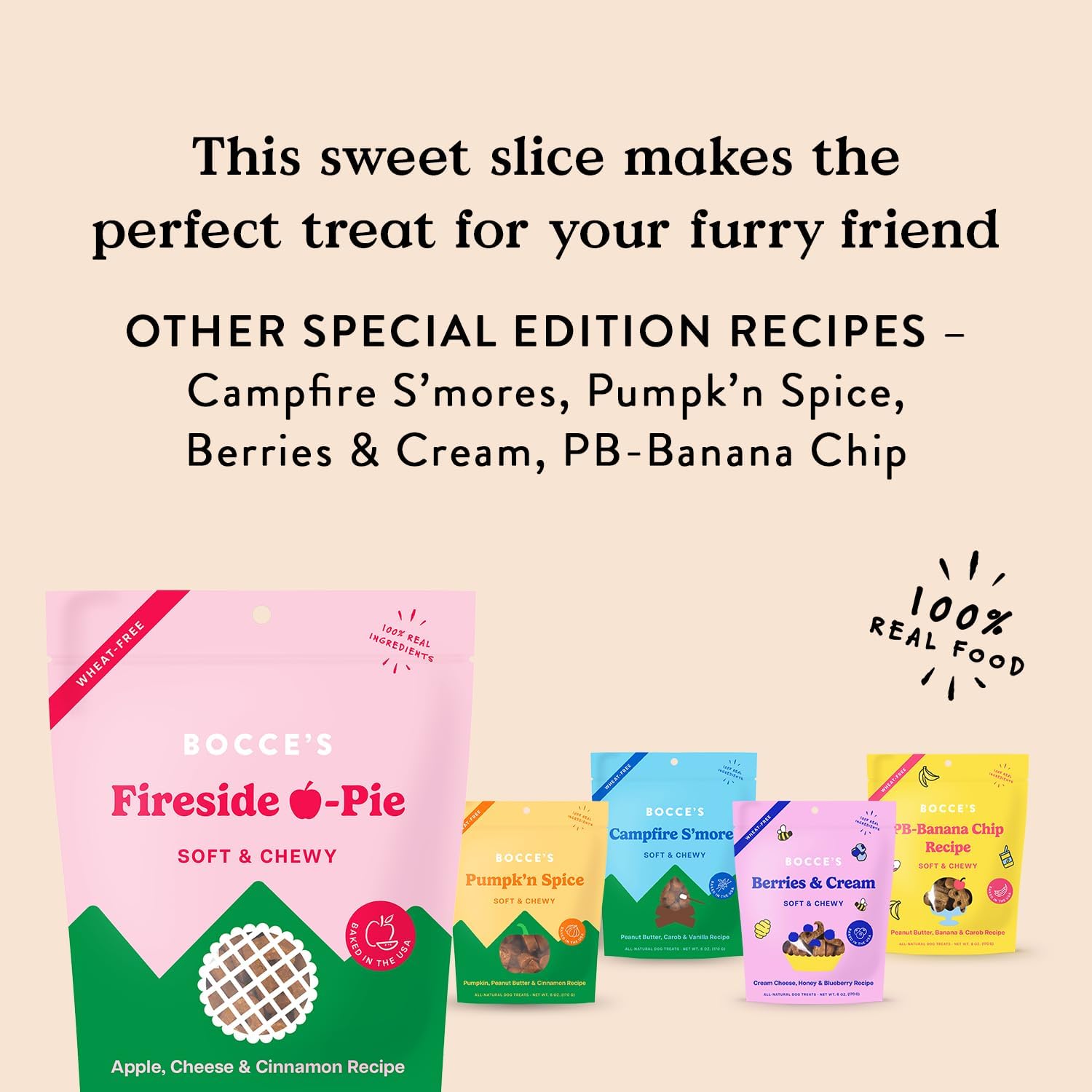 Bocce's Bakery Fireside Apple Pie Treats for Dogs, Wheat-Free Everyday Dog Treats, Made with Real Ingredients, Baked in The USA, All-Natural Soft & Chewy Cookies, Apples, Cheese & Cinnamon, 6 oz