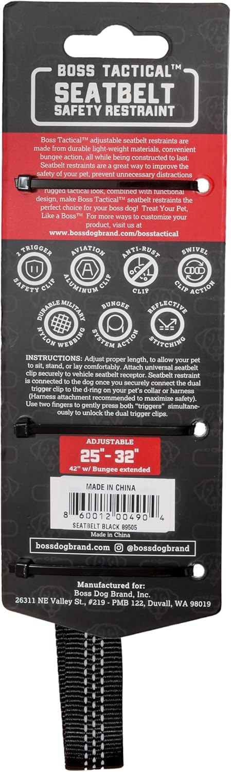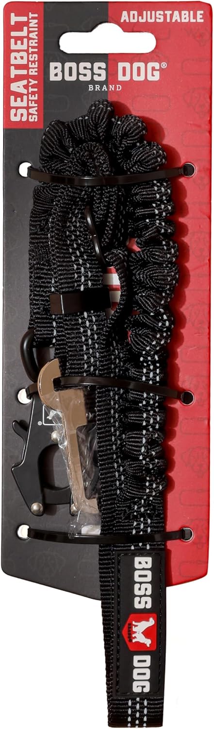 Boss Dog Tactical Bungee Seatbelt Safety Restraint for Dogs and Cats, Black, Adjustable 25-32 in