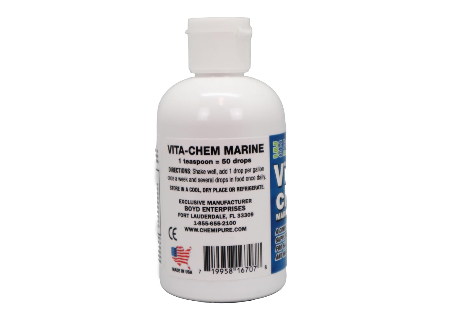 Vitachem is a pre-stabilized multi-vitamin that is water and tissue soluble-it's a revolutionary concept in vitamin supplements for freshwater, saltwater and invertebrates kept in closed systems. Vitachem is excellent for fin regeneration and correcting lateral line disease. Vitachem brings out the natural colors in fish. It has been tested by some of the most experienced breeders, hobbyist and public aquariums for over 20 years producing consistent results like better spawn and growth rates. Vitachem Fresh has 30, naturally occurring extracts from live organisms bonded with amino acids. Shake well, add 1 drop per gallon once a week and several drops in food once daily. Store in a cool, dry place or refrigerate.