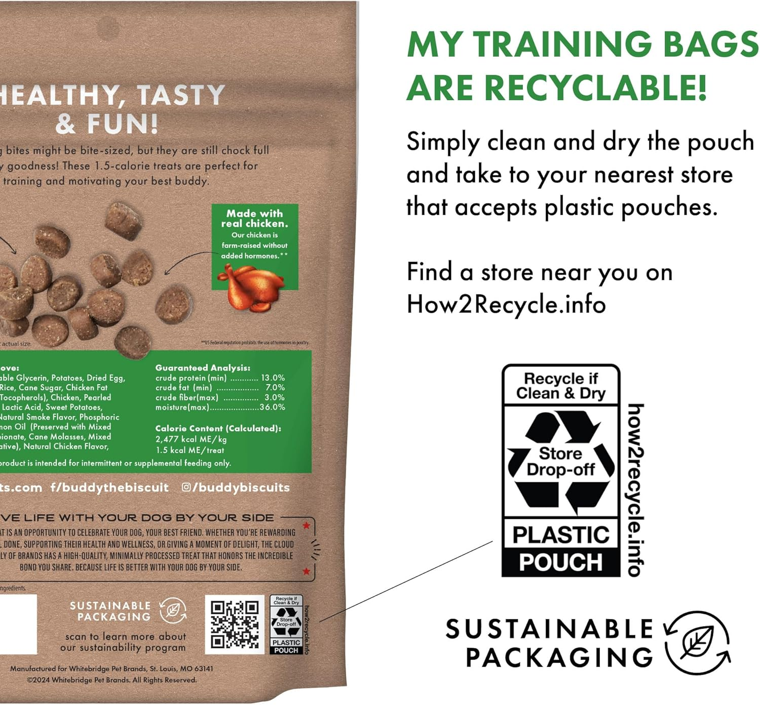 Buddy Biscuits Trainers Pouch of Training Bites Soft & Chewy Dog Treats Made with Chicken Flavor
