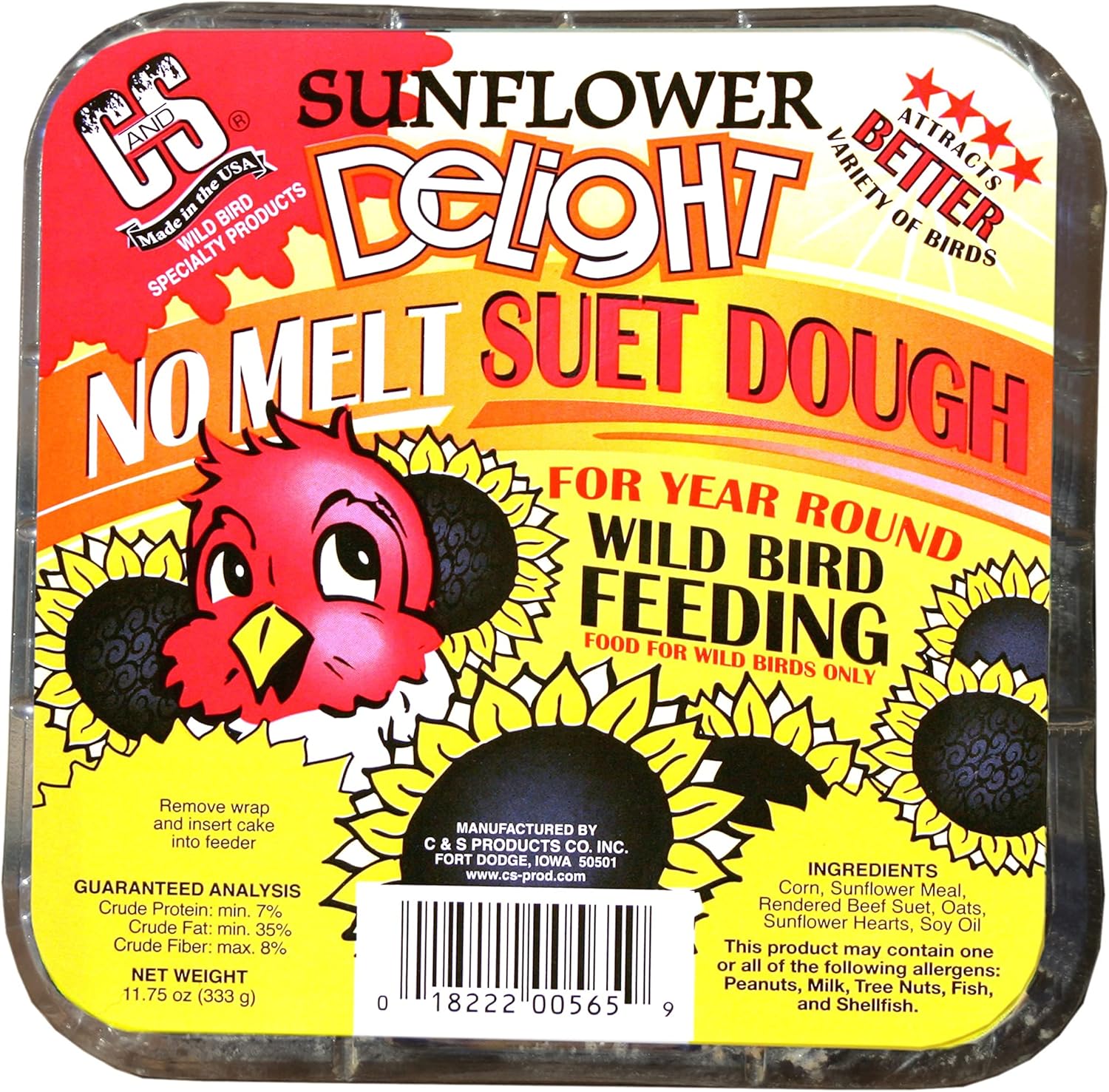 C&S Sunflower Delight No Melt Suet Dough Single Packs, 11.75 oz