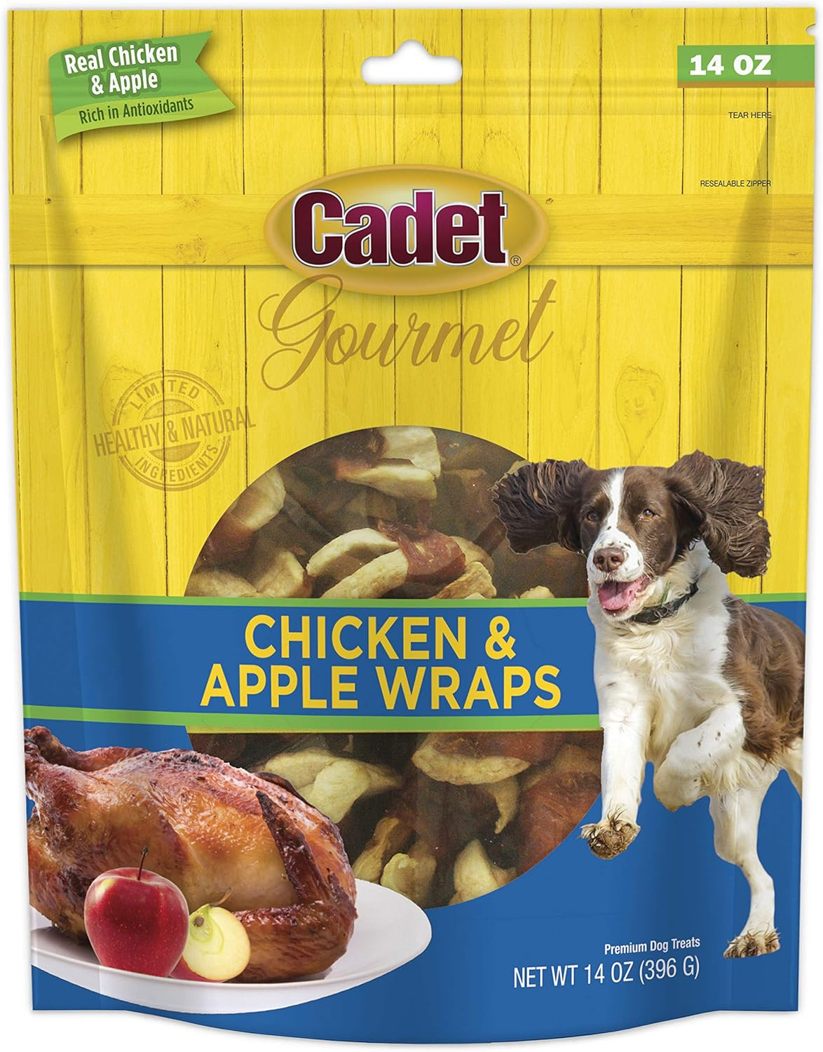 Cadet Gourmet Chicken & Apple Wrapped Dog Treats Wraps - Healthy & Natural Chicken & Apple Dog Training Treats for Small & Large Dogs - Inspected & Tested in USA